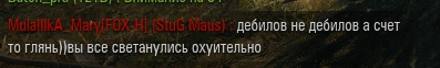 Друое дело, когда эти картавцы любой его шизовысер (который он повторяет по 100 раз за стрим) принимают на веру и начинают с ним носиться как с истиной в последней инстанции (типа, подколы плохие снаряды, а кумули хорошие; про снаряды в землю; про подкрутки, тепловые карты; про то, что зелень - это самые хуевые игроки (видимо хуже желтых и рыжих) и т.д., можете еще накидать его шизы, я уже подзабыл).