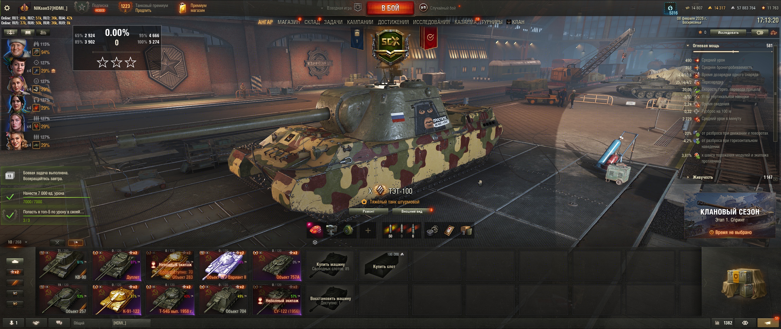 Хз зачем это говно нужно.Я даже кекипаж не сдал перковый в ЭТО пихать. Это ебаное дерьмо не едет, между тычкой 8 секунд, мало того что он большой, так и УВН нету (я не верю в эти -8). Хватило два боя, отобью серу за апнутую красную закалку с БП. Видимо на тесте нормально он ебал, но хуесосы забоялись выпускать в релиз ЭТО, по итогу - что имеем, имеем. Я лучше буду терпеть на 617q с его сиськами на башне.