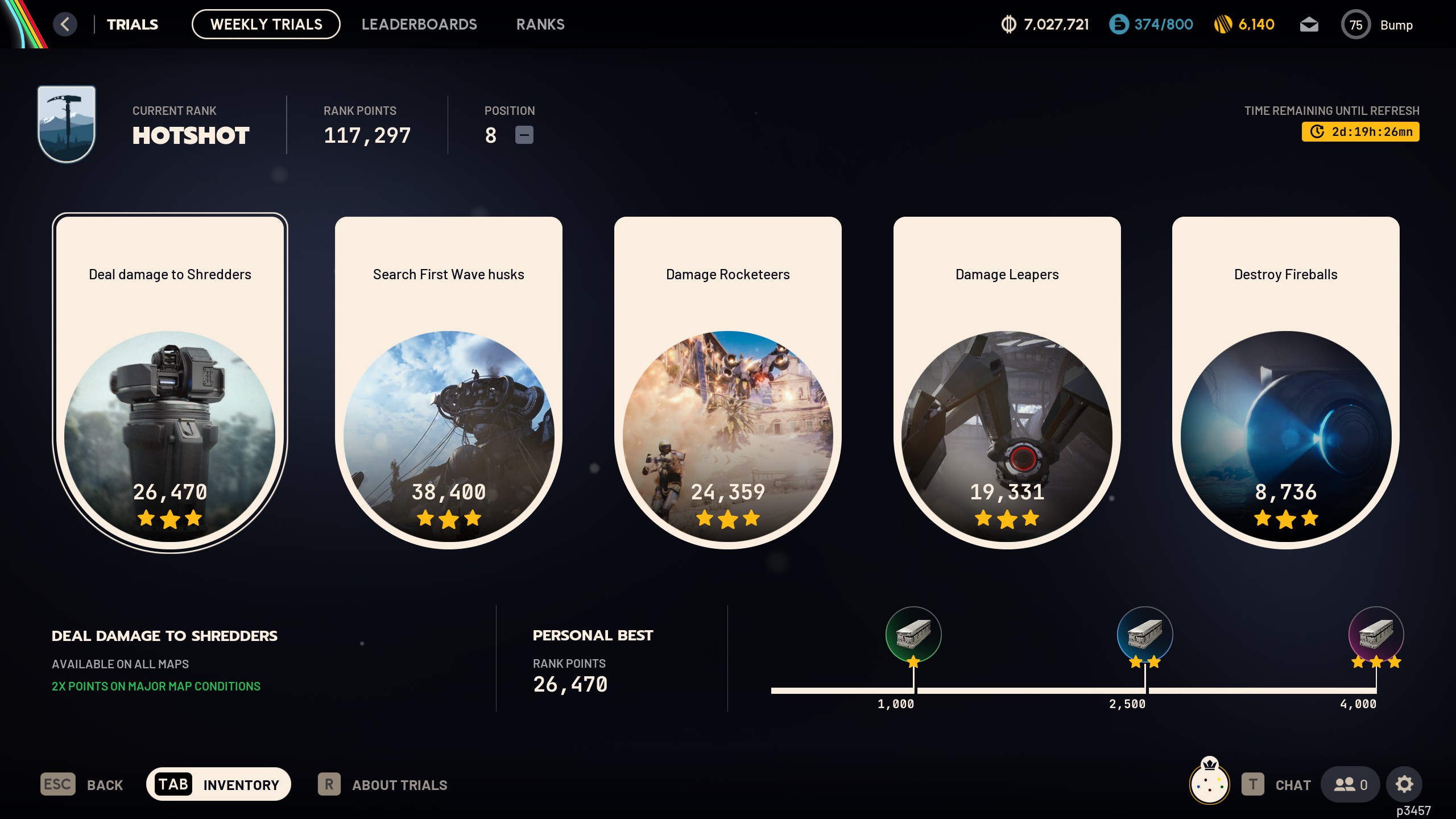 Пока так, шаров планирую поднять повыше, а дальше поглядим, насколько таблица запотеет. Отмечу, что на этой неделе действительно не протолкнуться, все без конца блокируют спавн/кидают вульфпаки. С одного захода хайскор не набьешь, должно повезти со спавном и игроками, нужно ходить заново и заново.