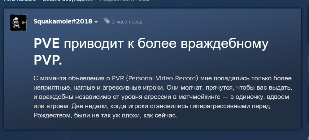 >The game needs that element of tension and risk from other players to be good. And of course, we acknowledge that people are having a lot of fun with these safer lobbies, but it's not prescriptive. Почему никто не обсуждает? Разраб подтвердил, что не хочет пве лобби.