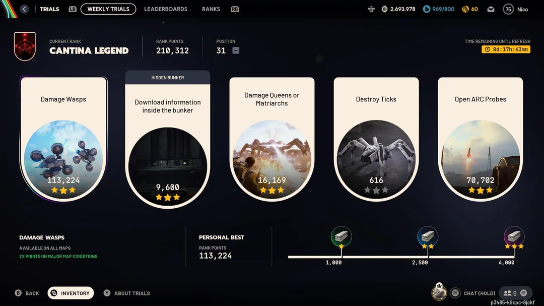 >>50765157 Топ1000 по очкам в хотшоте переходят на следующей неделе в легенду кантины. При этом не важно, на каком месте ты в своей таблице, важно числовое значение. На легенде у тебя вместо таблицы в 100 человек будет таблица из всей 1000. Там сейчас проходные очки в районе 270-280к.