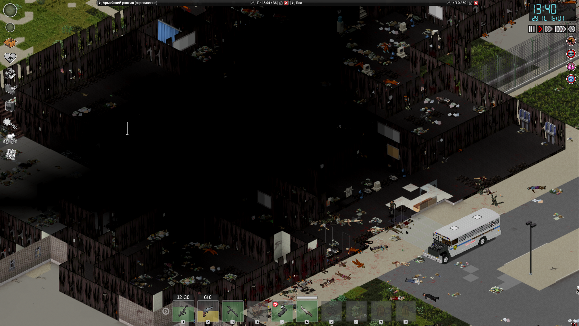 Но компенсирую это в то же время околонулевым количеством лута, спринтерами, хорошим слухом и постепенным ростом населения от х0.75 до х2.5, так что к третьему месяцу Луи становится настоящим адом, где одна ошибка и ты ошибся.