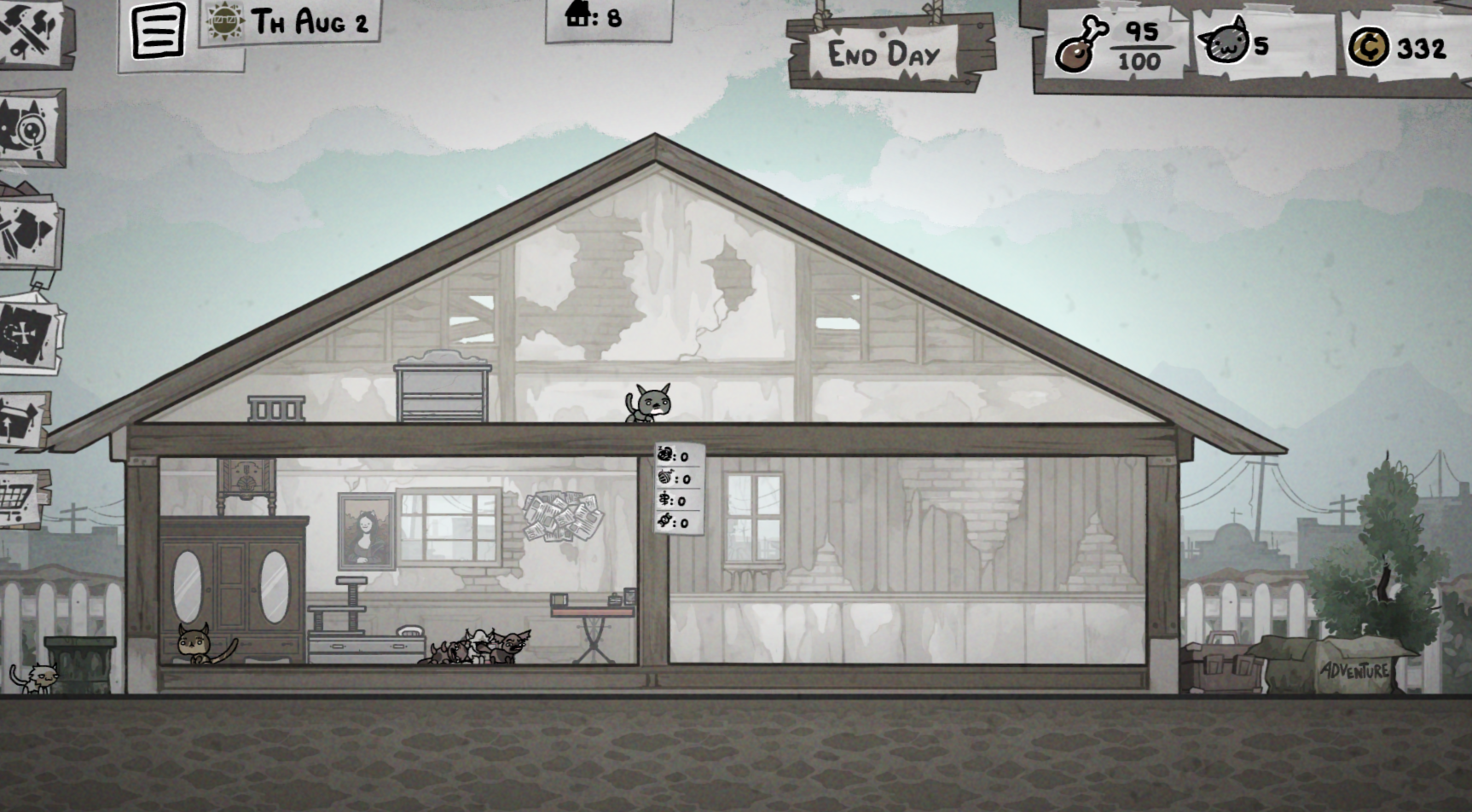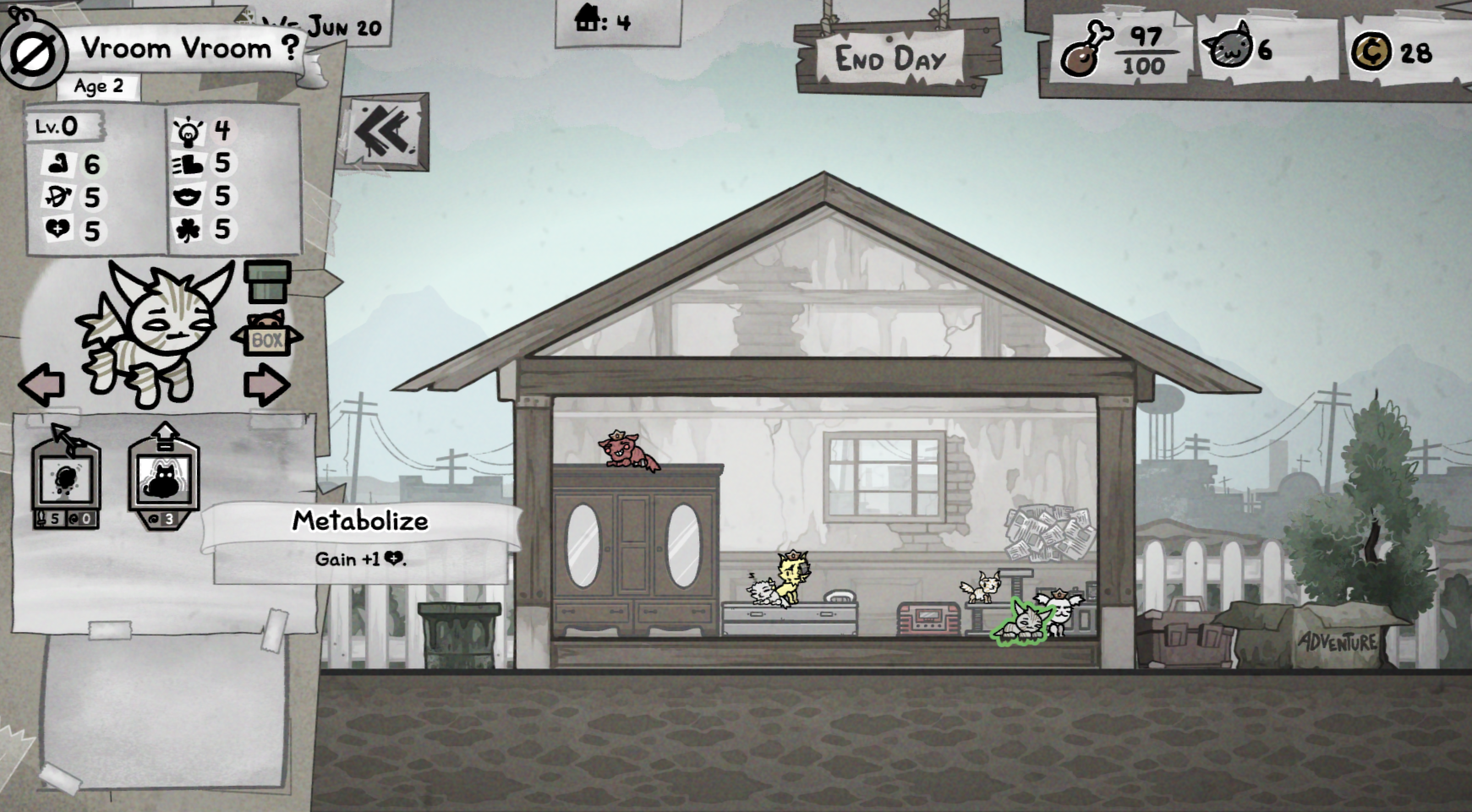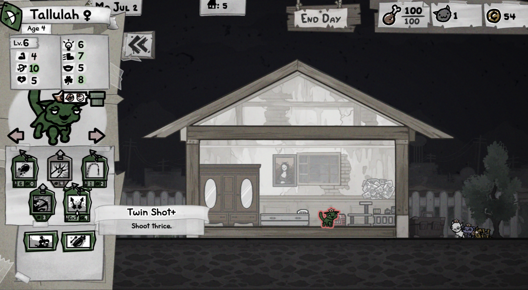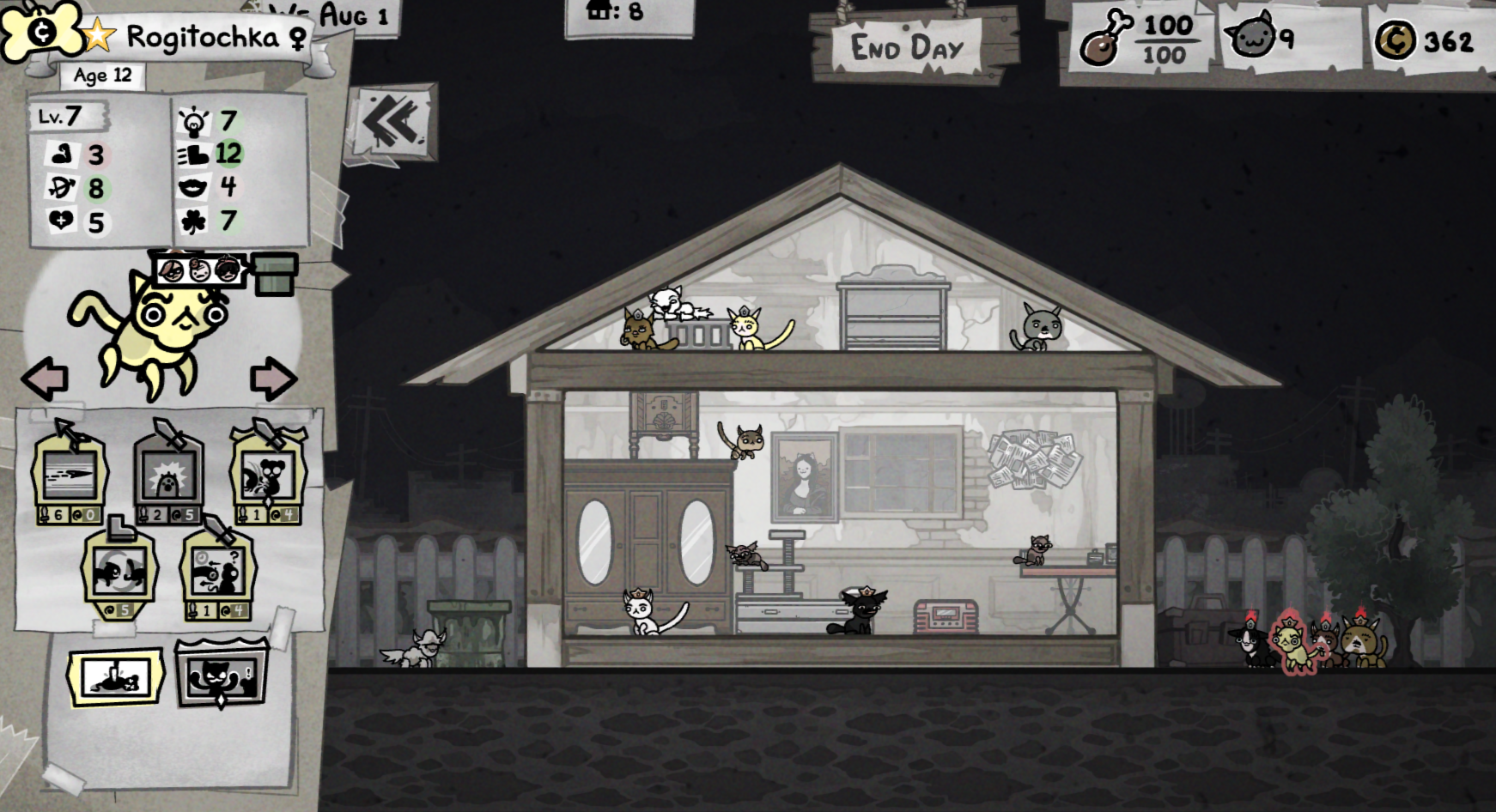 >>50757308 Зачем? Там нет смысла на таком раннем этапе плодить котят, это ничего не даст. Поднимай мебелью Апил хаты, значок в виде Дома на базе, чтобы с улицы приходили коты с более высокими статами. Чтобы заниматься сознательным разведением котов, нужно хату расширить, накупить мебели специальной, прокачать Тинка, чтобы он тебе открыл больше инфы о котах, их родословной, прочем.