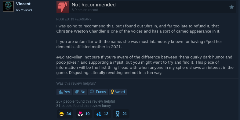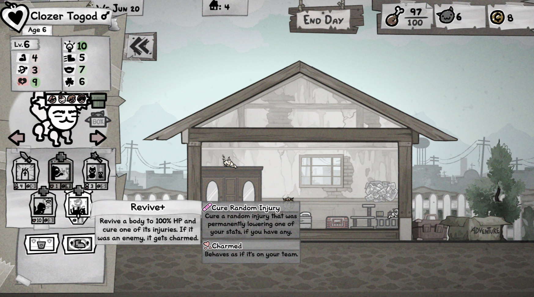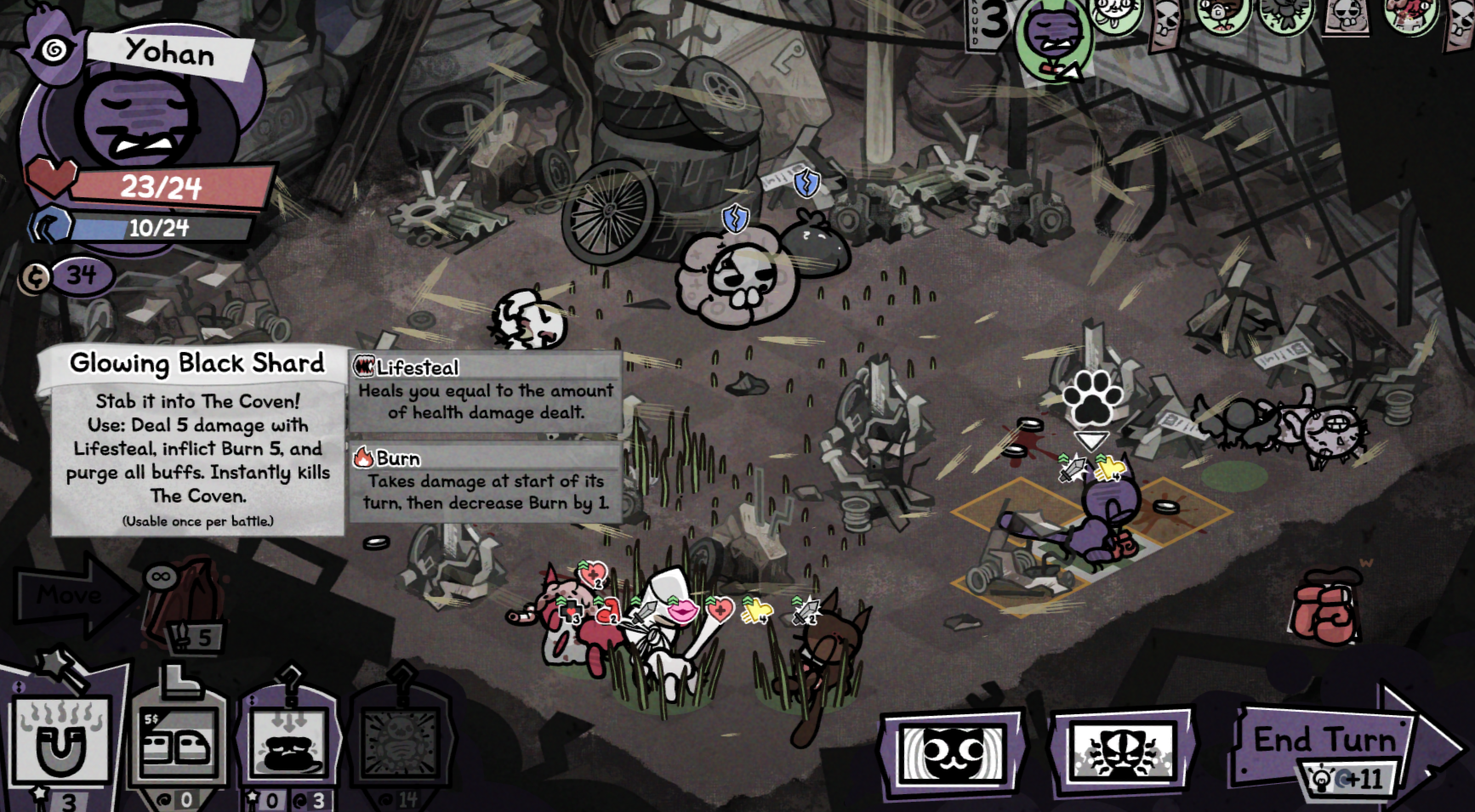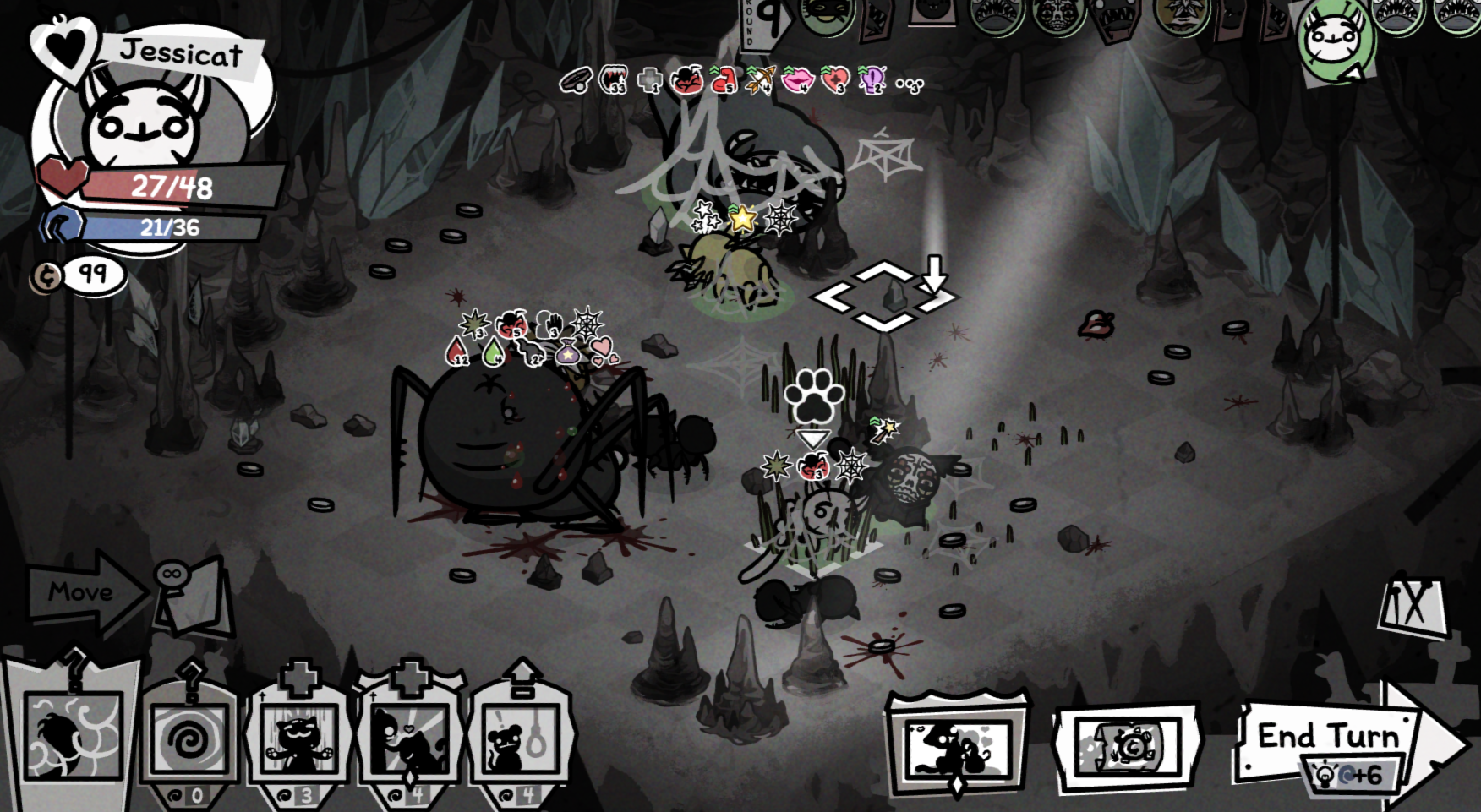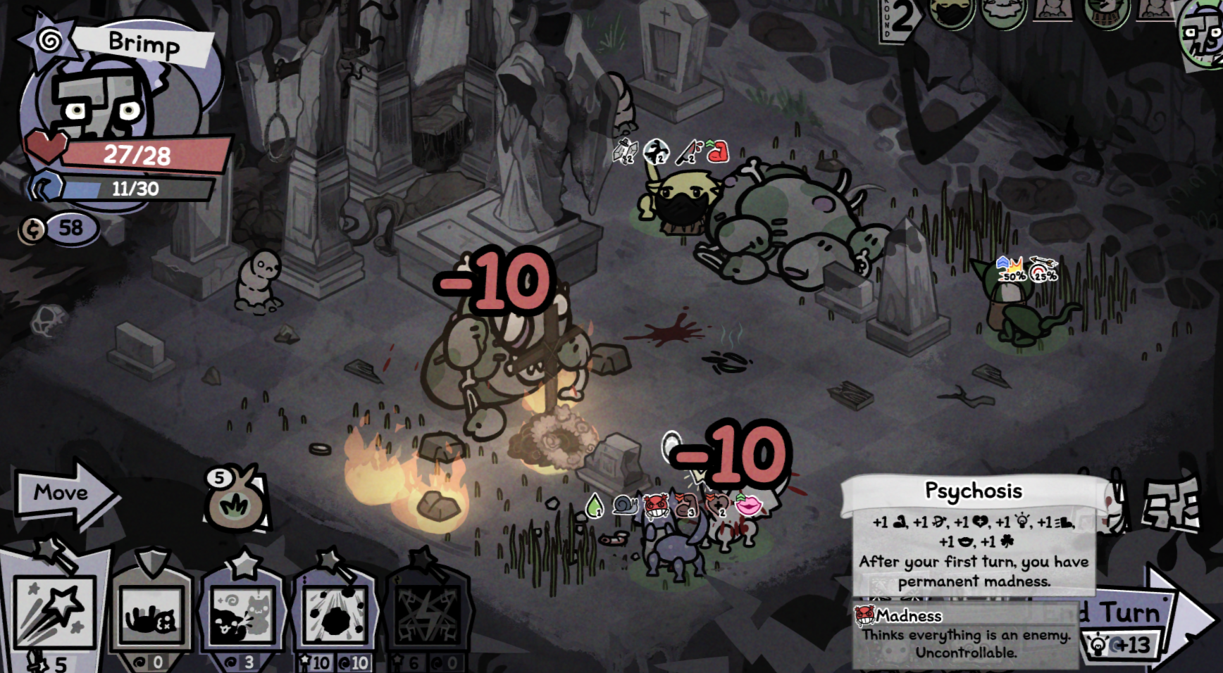 На 7 часу уже полностью заебала. Уникальных ситуаций хуй да нихуя, старичками играть нельзя, большинство абилок унылые, музыкальных тем мало, текст кринжовый, ублюдочная карта вместо нормальных перемещений как в большинстве рогаликах, дроч на нужные билды как в последней версии Айзека(не вкачал атаки ,по площади и отсосал хуй на босе в кладбище), босы в принципе от обычных мобов отличаются только количеством хп и инициативой.