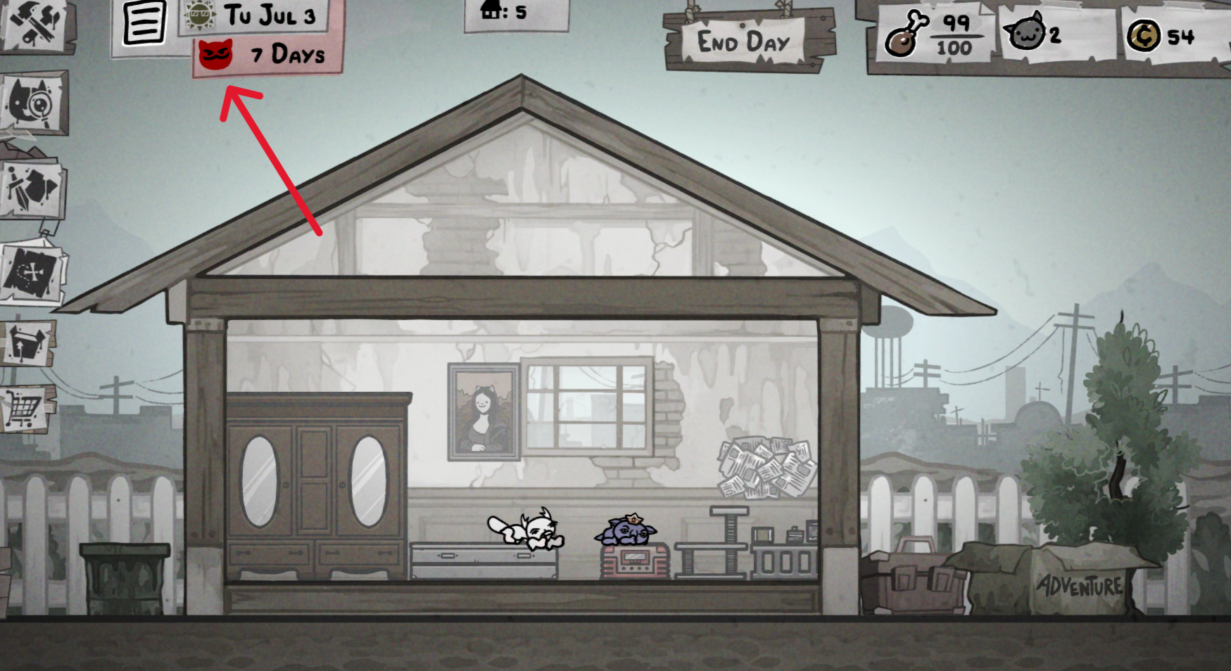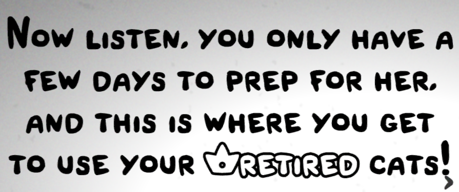 Новая механика разблокировалась. Теперь на твою базу нападают Ультимейт Боссы. У тебя есть 7 дней на подготовку. Бутч говорит, что с ним нужно сражаться своими сильнейшими Кота на Пенсии. Говорит, что у этого босса нет слабостей и она ебашит инстакилами. Так, что не выбрасывайте всех своих отработанных котов в трубу. Базу всегда должны охранять четыре ваших сильнейших кисика, которые уже прокачались.