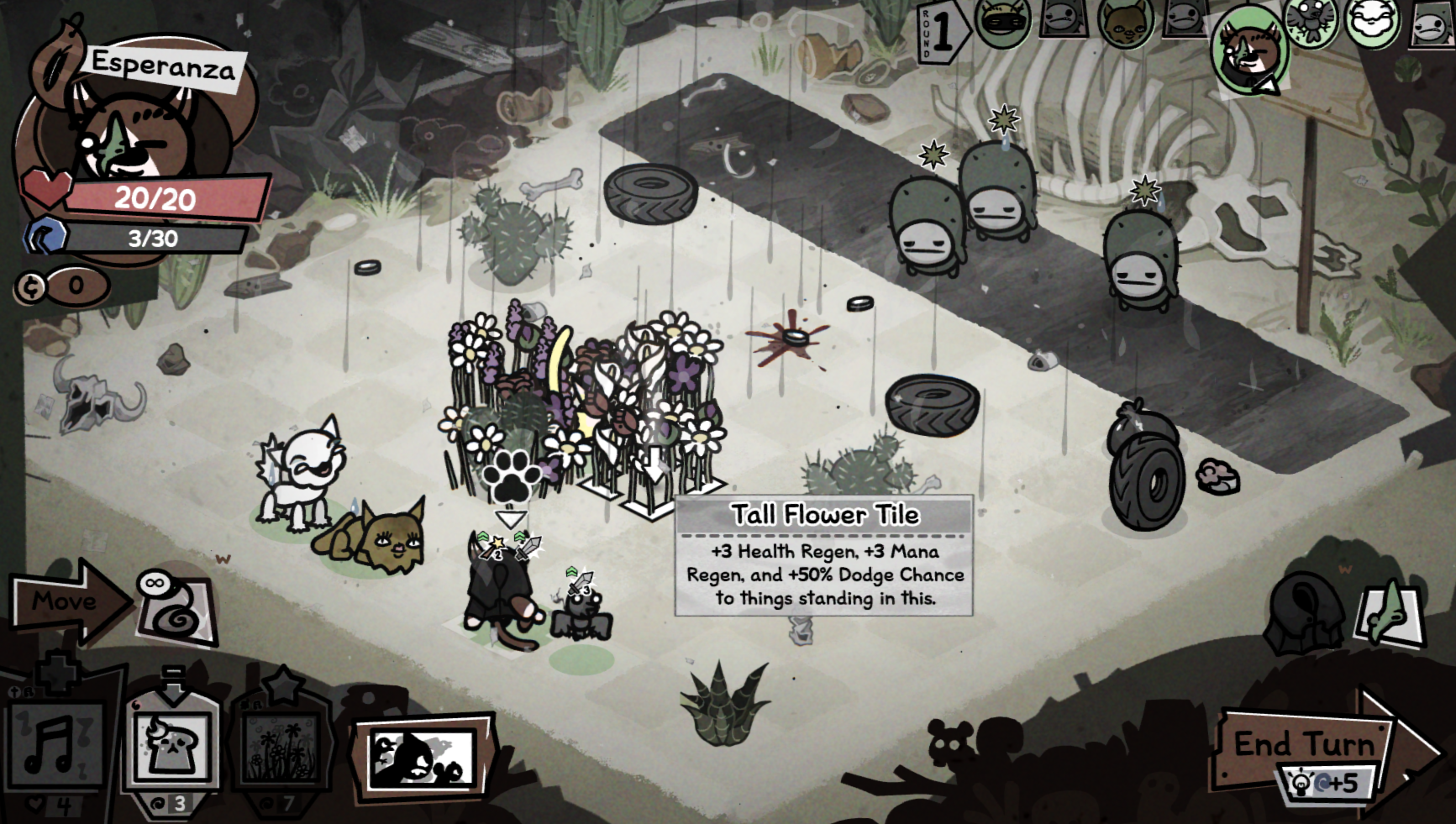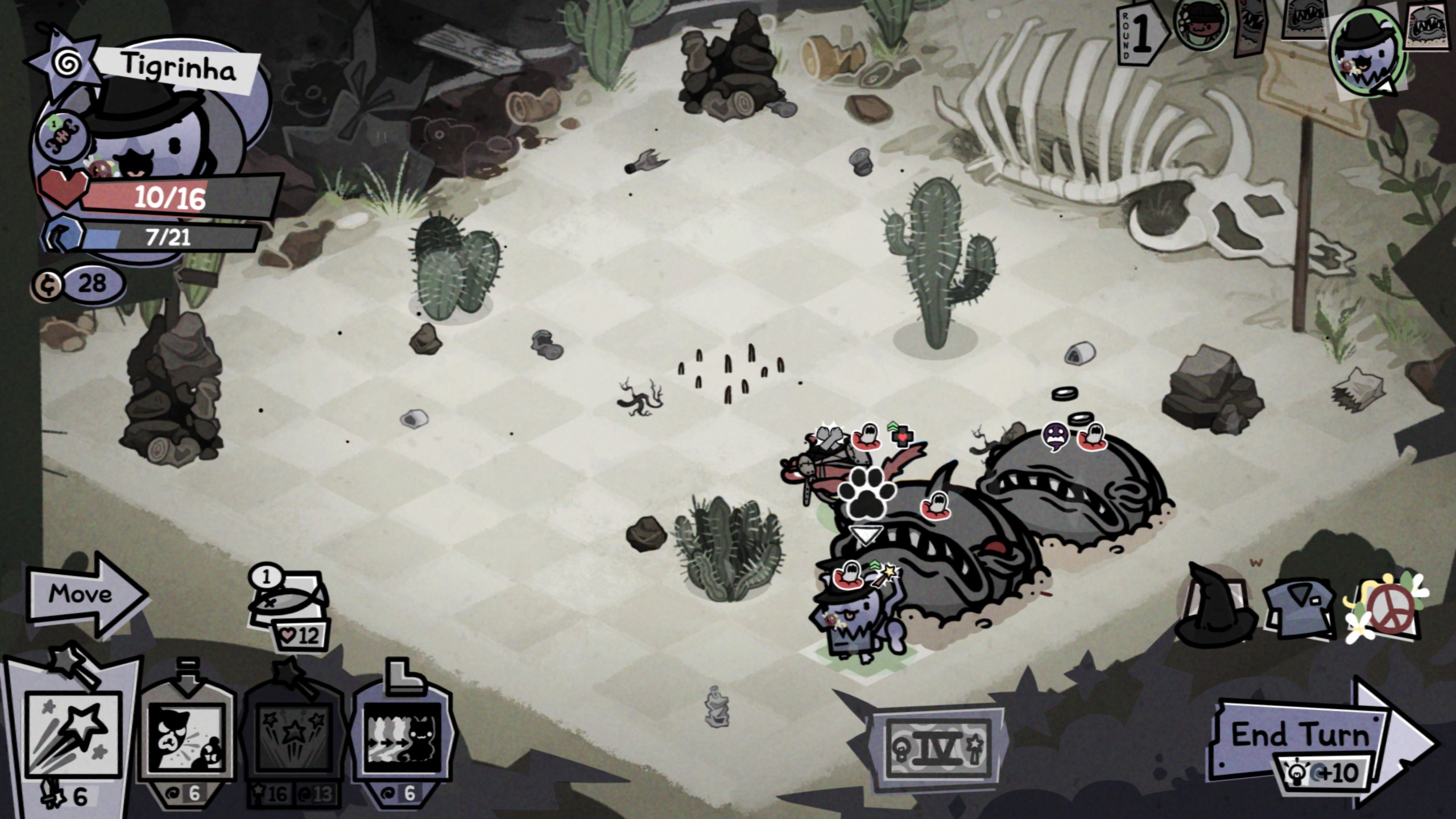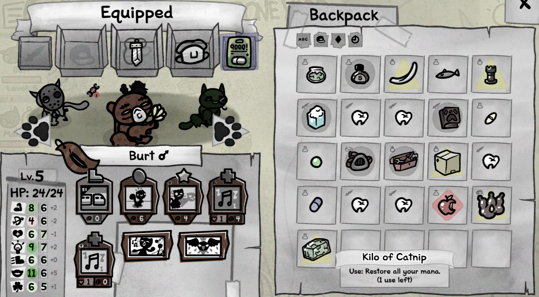 Кладбище Пройдено. Там супер душный финальный босс. Он короче уклоняется от всех атак. Его нельзя ранить прямыми тычками. Только зарядами которые летят по линии например. Или поджечь нахуй всю локу, чтобы он по огню катался. Короче нельзя его просто бить, нужно как-то изъёбываться. Он может вселиться в твоего кисика и взять над ним контроль. Выгнать его можно только победив тиммейта. Собрал ещё более йоба снайпера. Он короче может сам выращить Траву, у него рарный платок, который ещё на 40 процентов повышает уклонение в траве. Плюс он входит в стелс. Плюс бандана ещё на 25 процентов уклонения. Короче пока он стоит в траве у него более 100% уклонение. Он может пропускать ходы и копить атаки. Просто стоишь в стелсе, пока остальные дерутся, потом вылетаешь и выпускаешь всё это в босса. После Кладбища открылась Пустыня.