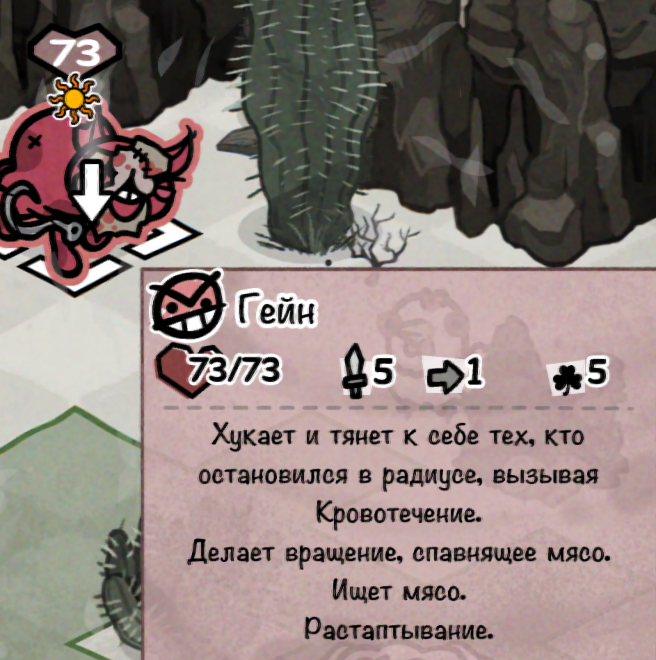 Короче... стоит кактус... просто объект, который дамажит если на него напороться. Если его разбить, из него вытекает вода, которую можно перелить в бутылку и избавиться от вечного дебафа локации Пустыня, запрещающий хилиться после боя. Кактус разбился... Босс его воскресила и теперь это Зомби-Кактус. Но он просто стоит... он как-бе злодей, при этом неживой объект, но он какбе-зомби...