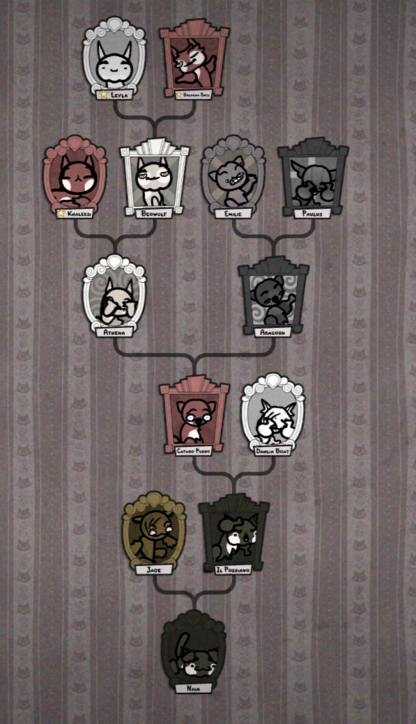 Короче если прокачивать Тинка, он расширяет статистику данных о кисиках. На 2 уровне он будет показывать какие у них базовые статы без модификаторов, ибо только они переносятся котятам. На следующем ранги написано, что откроется Родословная!1
