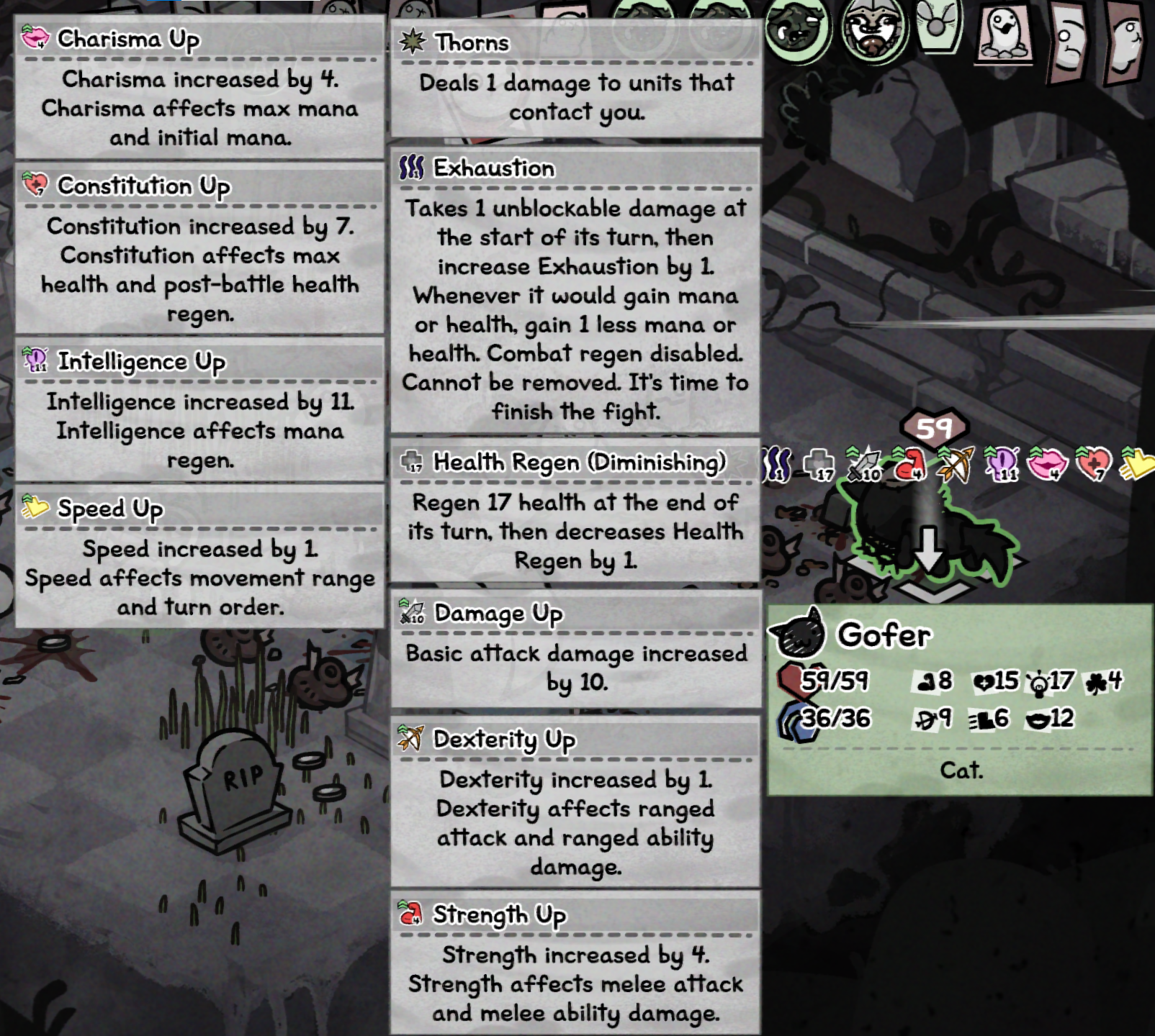 Дип механики Мявгеникса номер 264645: Если вы получили дебаф Камикадзе - взрывающий нахуй тело кисика, когда он лишился всего хп в битве. Не пробуйте активировать скилл - Притвориться мёртвым. После того как кисик притворяется мёртвым, он резко взрывается нахуй. Не остаётся даже тела, хиллер не может его воскресить.