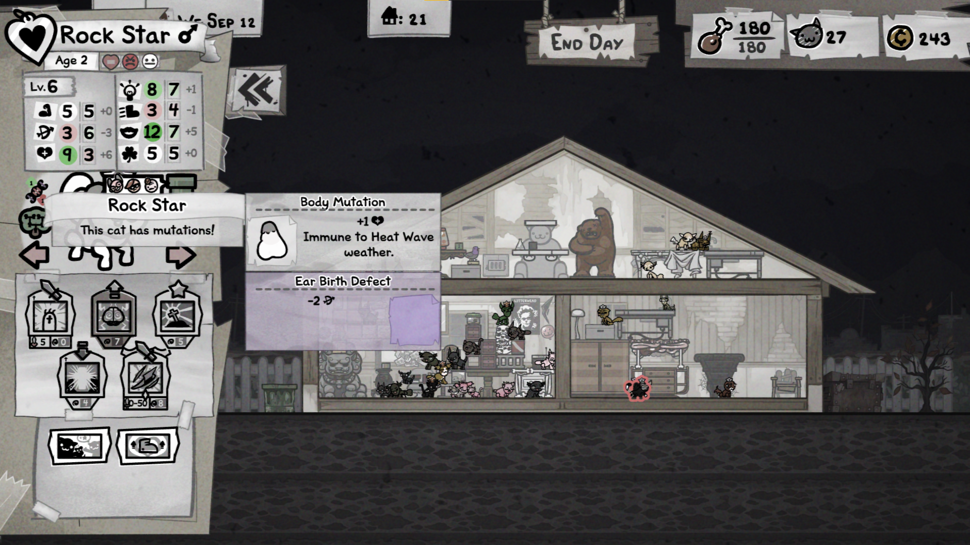 >>50754547 Там можно ещё комнату мутаций отстроить, чтобы появялись рандомные мутации. У меня открылся непись Док из начала игры который нас создал. Он принимает только котов с мутациями.