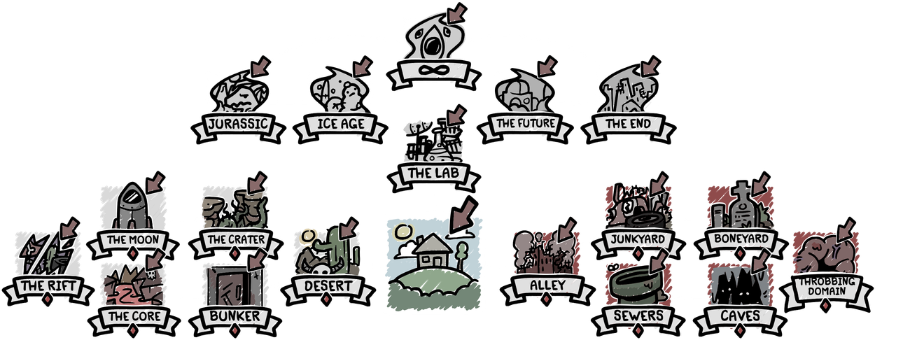 Короче ананасы там ещё развилки оказывается. Из первого лвла - Улиц, там можно перейти в Канализации или Свалку. После Канализации - Пещеры. Щя прошёл через Свалку... там разблокируется Кладбище.