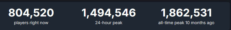 >>50773823 Манька, если ты притащил игры, у которых есть родные лаунчеры, в которых народу сидит поболее чем в стиме (это я ещё про сосноли не упоминаю), и этим перемогать пытаешься, давайка я тож из стима циферки притащу. Ой, а где 450к онлайна? Пиздобол ты, получается?