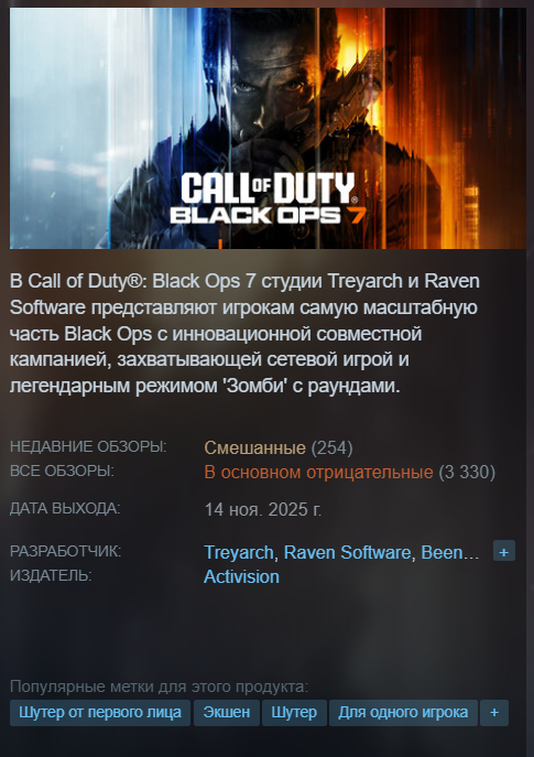 Кому не похуй на калофдути? Она умерла после mw 2. Алсо 36к это больше чем у недавнего батлфилда. Серьезные шутеры дегродировали, остались только кс лайки.