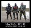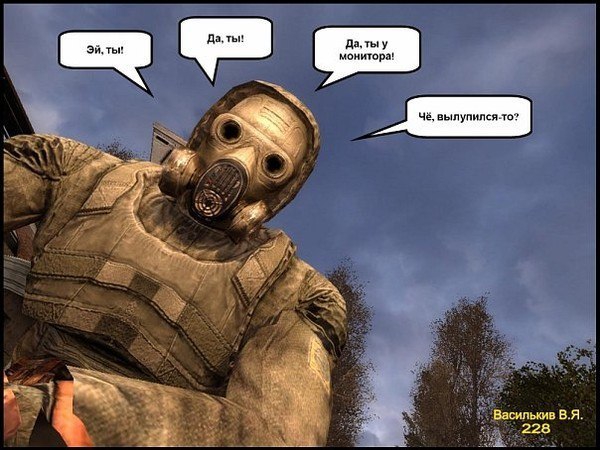 Два сталкера: - Ты с каждым днём всё больше становишься похож на алкаша. - Это почему же? - Да у тебя руки трясутся, когда ты ведро с водкой ко рту подносишь!