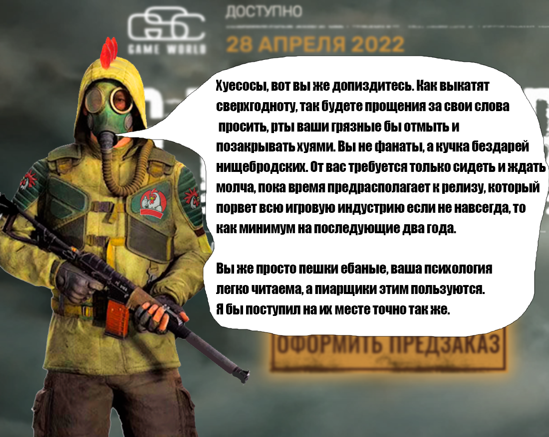 Шутки в сторону, представьте психическое состояние человека который с 2009 (8? 7?) года практически ежедневно играет в моды на сталкер. Мне кажется он скрытно подтарчивает ну или бухает от тяжелой депрессии