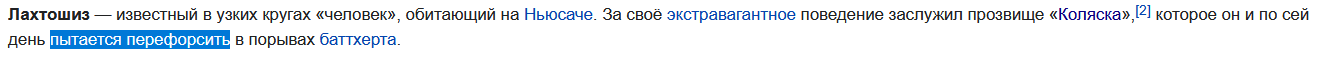 >>50786489 Ты не так понял. Это чудо (то ли из Питера, то ли, что скорее, из Запорожья) так обижено своим прозвищем, что решило перефорсить его здесь, раз на ньюсаче не получается. У самих новопысян тут была пара недобетатестеров на захисте, но после сокращений, видно, остался только Коляс на подработке