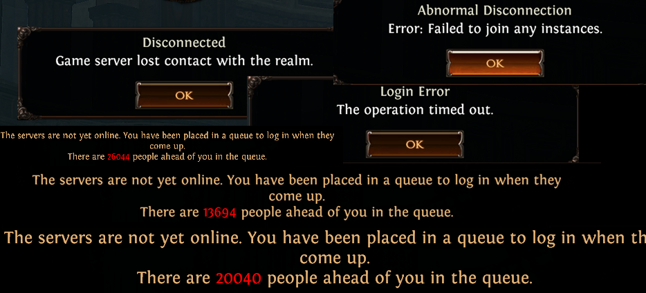 @monkey игроки не могу зайти в пое их кикает с сервера и кидает в очередь снова и снова дай базу типичная хуйня в начале лиги, все прут за дропами и ртутным флаконом, сервера в очереди как в мае на ж/д. проверь статус на status.pathofexile.com или в лаунчере, если красный - сиди жди.