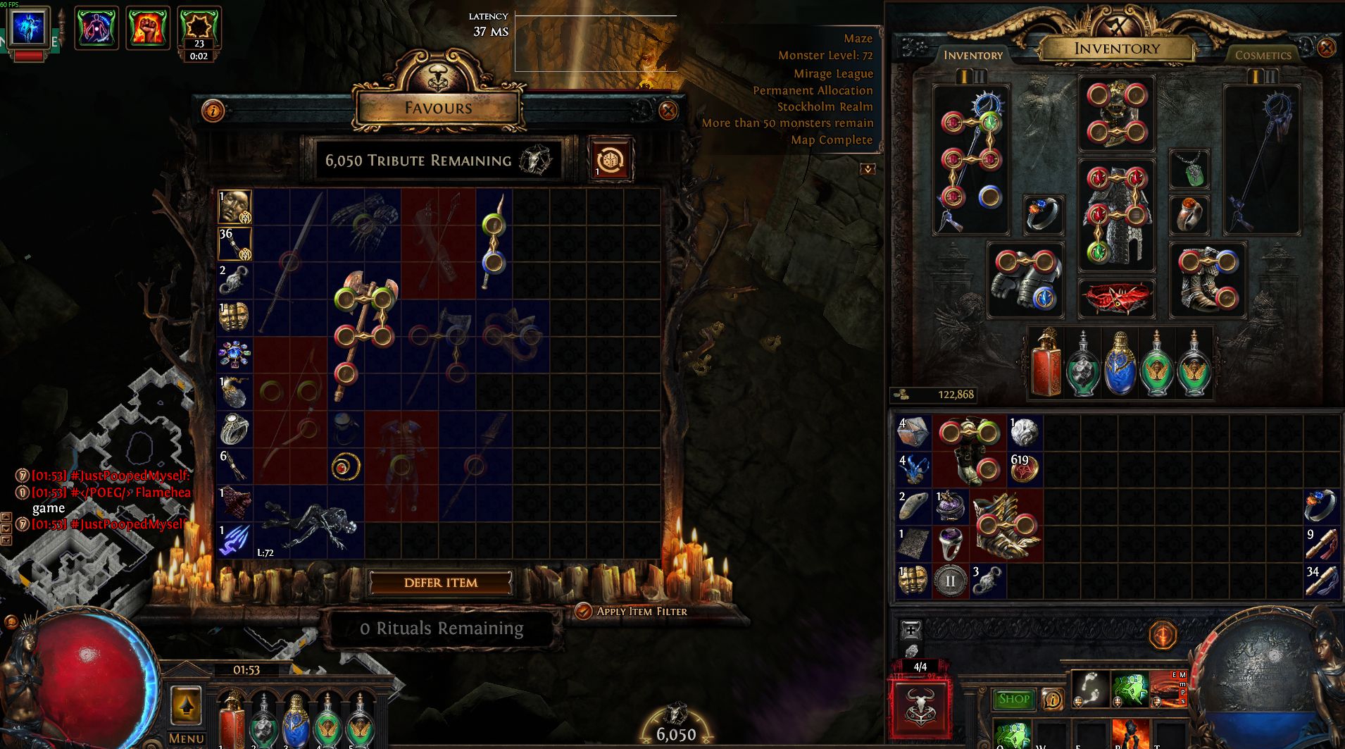 если не помогает - в /global 820 спроси, там шареют мастера и трейд, или awakened poe trade поставь для чека. через полчаса-час отпустит, не бомби.