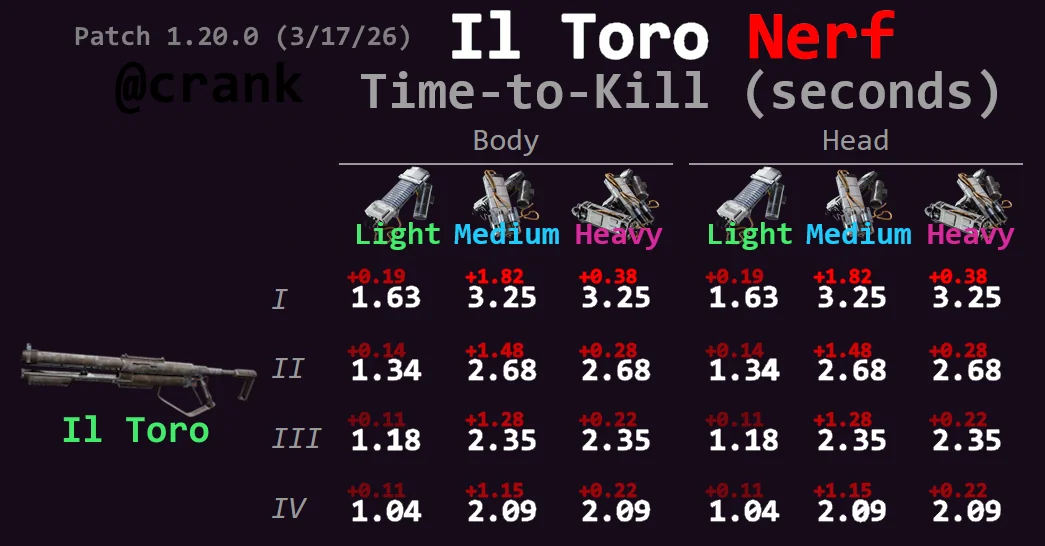 Вторник, пока в других играх выходят контентные патчи, в арке выходят очередные нерфы. No fun allowed. Добро пожаловать в эрроухэд 2.0. Ильторо занерфлен в хламину прямо к остальным зеленым говнооружкам. Видимо скоро мы добьемся того, что фиолетовые оружки будут в мете, после того как все остальное будет занерфлено до уровня неиграбельности. Стоимость энергопатронов тоже наконец занерфлена, неча вам делать деньги.