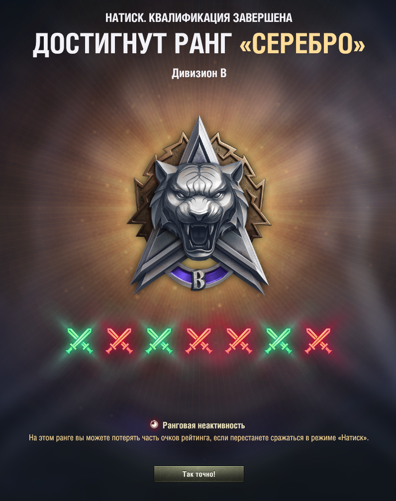 В Натиске за счет рейтинговой системы происходит естественный отбор. Ты довольно быстро достигаешь своего уровня и играешь с равными по скиллу соперниками. То самое соревнование, здоровый дух соперничества, вознаграждение за победы, цена победы намного выше. Требуются реальные усилия чтобы победить, от твоих действий зависит исход боя.