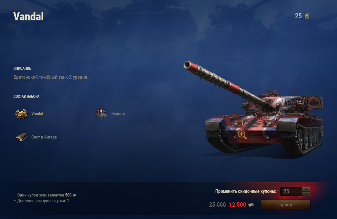 >>50854332 4 купона - это 2к. Ну и вандала же надо взять, а там еще и сотка не куплена. У меня сейчас 40 купонов, вандала уже можно за 5к взять, но подожду еще скидки за чемпа.