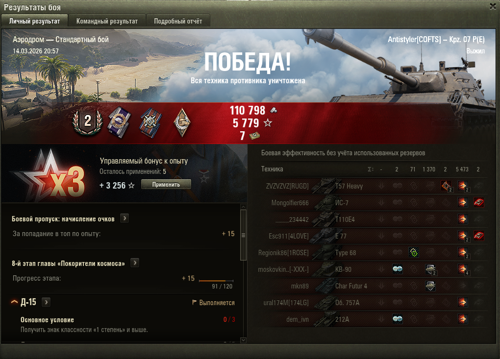 >>50862624 10 боев примерно Мне так не жить, со своей мочестаткой, ну за первый победный бой в среднем под 8-9к опыта под всеми бустами, кроме клановых, дальше значительно меньше, не выгодно же. Плюс х3 я распределяю еще на 4 разных танков для горбиты. Мне кажется это самый эффективный способ, если время остается катаю дальше премы. В общем, надо только немножко потерпеть.