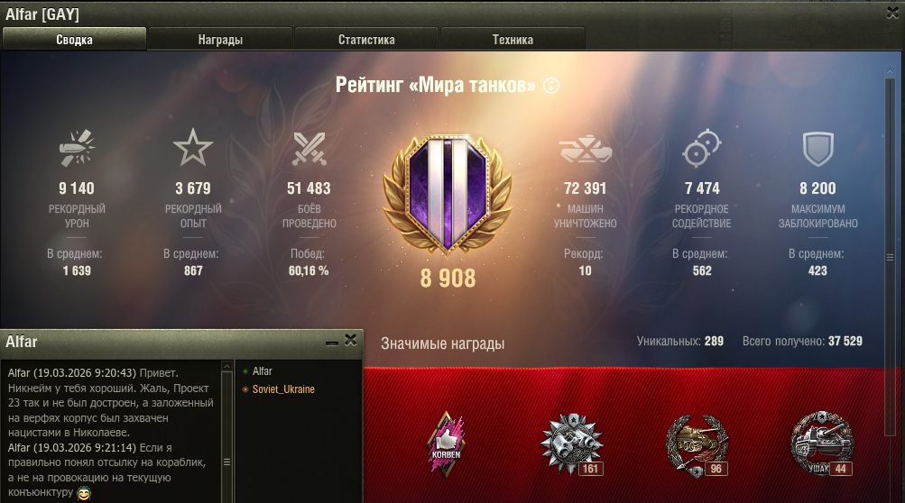 >>50853199 >не переключиться на лф Больше пары боев в эту тошниловку ни ногой. Если я зохочу пофармить, то сделаю это по старинке. >и не нафармить лишние 100+кк? Я же не нищук ебучий эти копейки считать. У меня серебра на ближайшие 2-3 года хватит поиграть не выкатив ни одного према. В этом и вся разница между нами. Ты считаешь постоянный выгул премов нормой, а я хуй на прем танк сяду пока не захочу именно на нем покатать. Я играю только на том что мне нравится. Ебал в рот эти дейлики, задачи, лбз, прочую хуету. Игра должна приносить фан, а не быть таблицей 1с. >Пик Немного обосрался с цифрами. У меня только на 8 уровне 14к боев. Суммарно на двух уровнях как у тебя на всем акке.