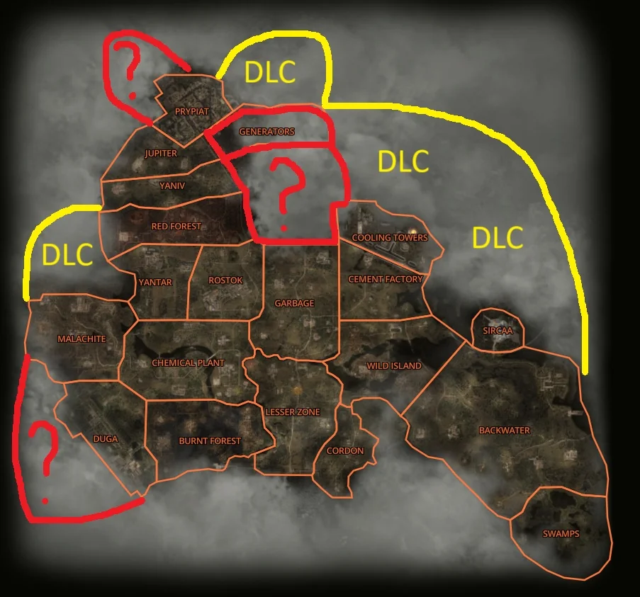 >>50887072 (OP) Откуда автор четвёртой пикчи взял что отмеченные жёлтым территории вообще будут добавлять в игру? В игре буквально никаких намёков что там чё-то есть. А вот красные как раз таки добавят, это очевидно, но вряд ли в одном дополнении. Уж точно не второй кусок Припяти. Вот во втором - вполне возможно.