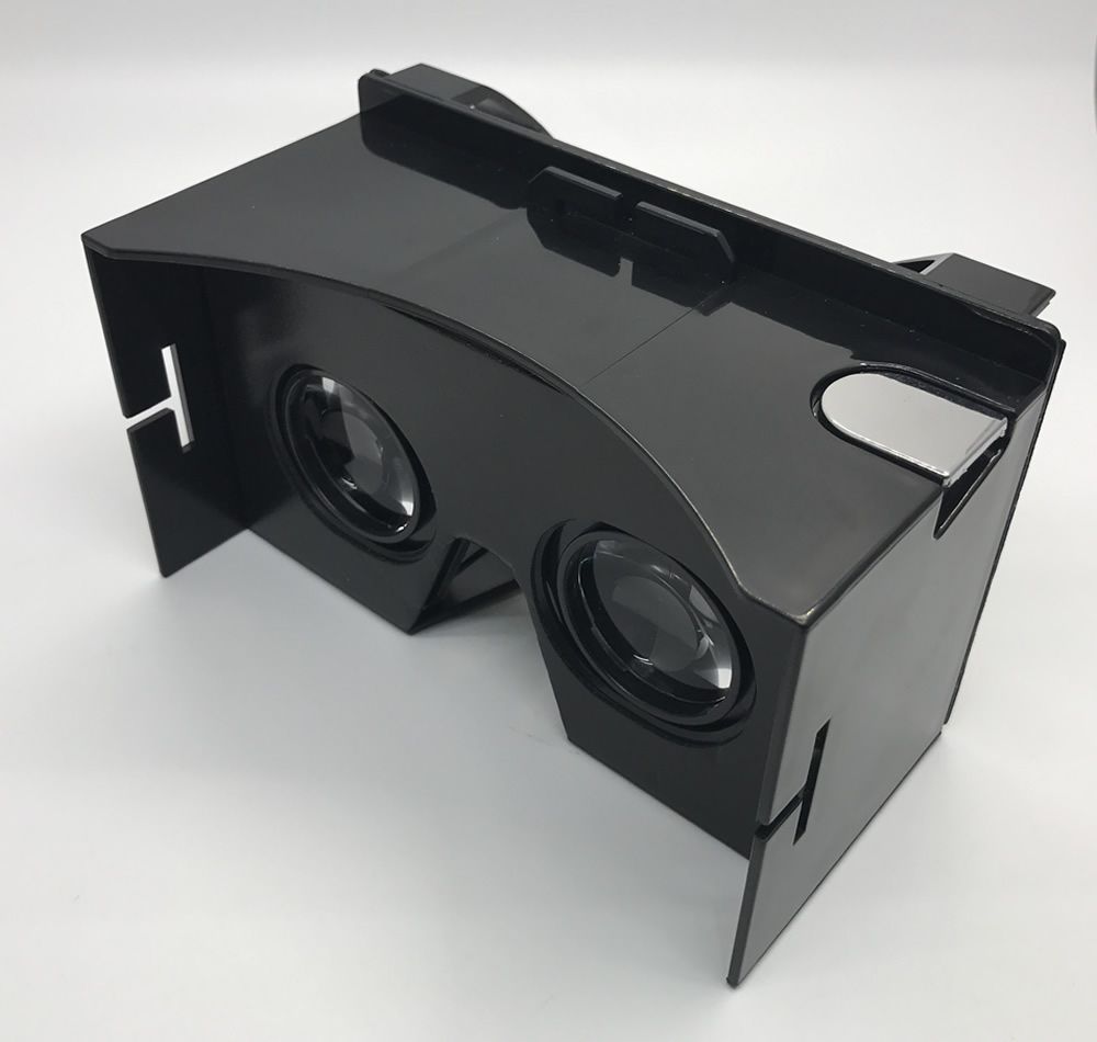 Возможно, вопрос уже решен, но все же, если нужен прям самый дешёвый и среднего качества - Гугл Кардборд. Правда, там диагонали экрана только определённые подходят, и регулировка фокуса/расстояния между глаз отсутствует.