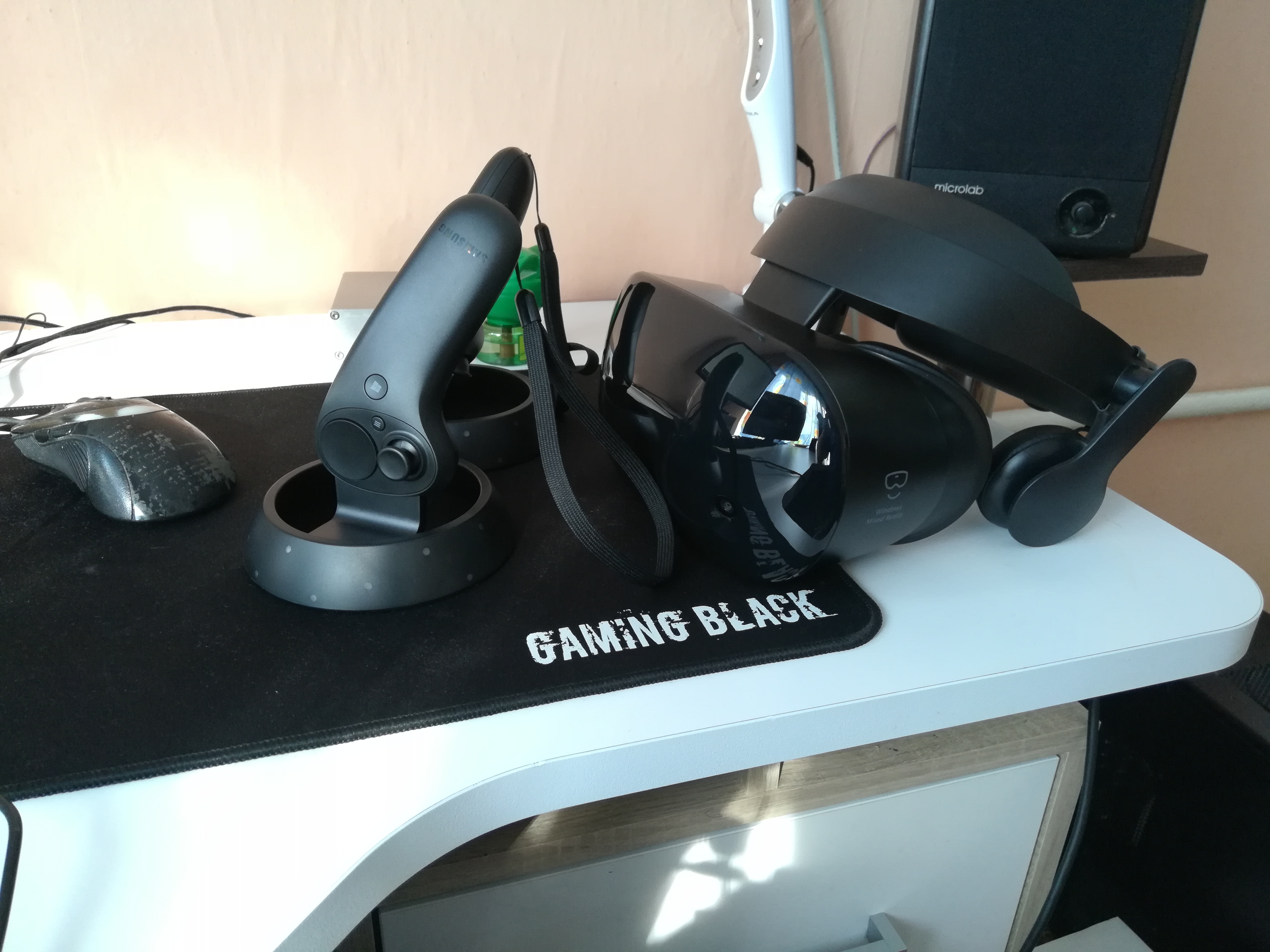 Все нормально. Угол обзора меньше чем я думал, ну тоесть где то 100 градусов и есть как заявлено но я думал что это будет ощущатся больше. А тут прямо как в бинокль смотреть. Пиксели явно видно, но не на столько чтоб руинило игру. С трекингом есть особенности. Контроллеры в области видимости трекаются идеально, за ней есть проблемы - ну все как я ожидал. Обычно в играх все нормально, но в Gorn все двуручные виды оружия неюзабельны. Но это не помешало мне за две игровые сессии побить контролееры и чуть не расхуячить один об стену. Да сами контроллеры удобные, но сделаны на соплях. Тонкий пластик, сломать легко, до вайв вандов им судя по всему далеко. В общем я получил примерно то что ожидал, хорошо что взял сразу к нему удлинители. Встроенный провод короткий.