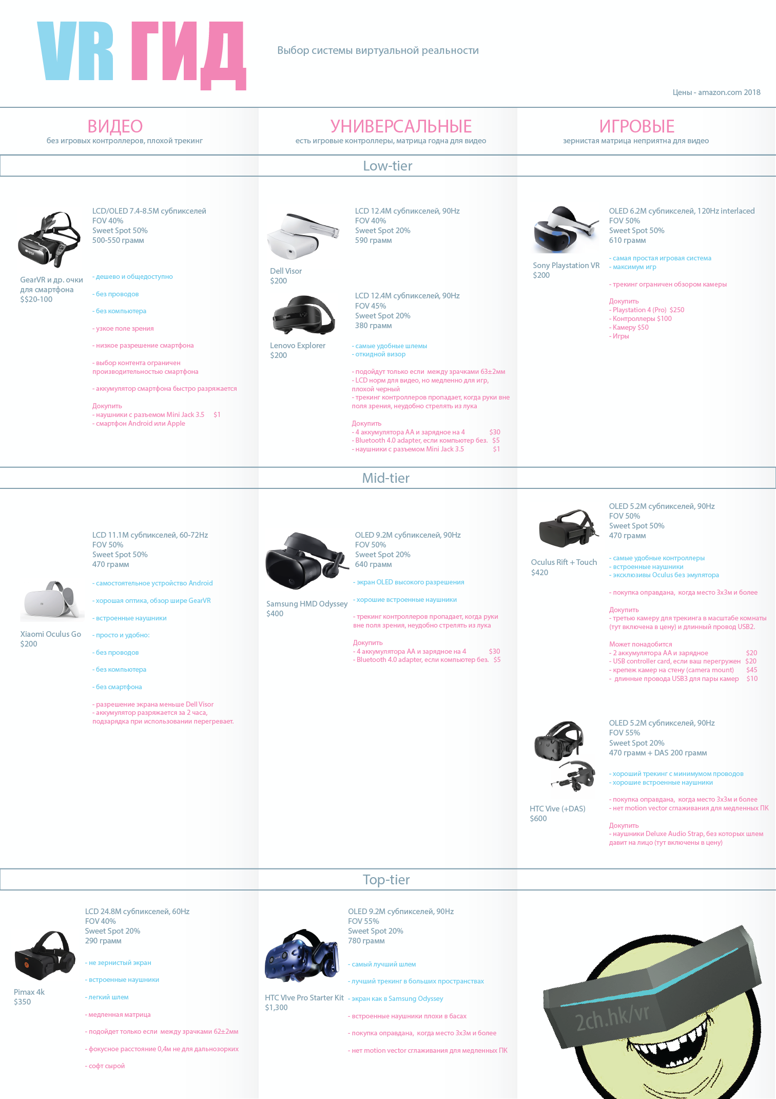 Себастьян пояснил какие шлемы брать. По возрастающей в зависимости от обстоятельств: Oculus Go, Sony PS VR, Lenovo Explorer, HTC Vive, Pimax 5k. А что же насчет Oculus Rift? - А идите нахуй, сказал Себастьян.