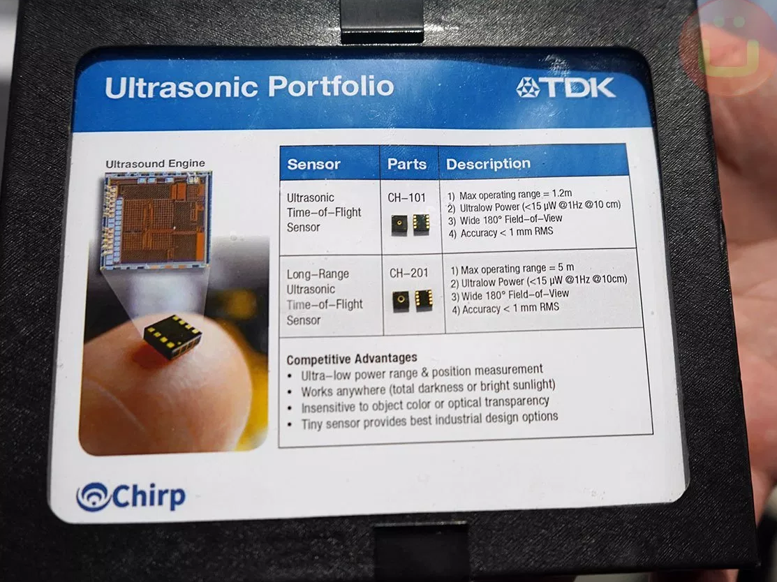 Ультразвуковые датчики TDK Chirp SonicTrack дают меньшую нагрузку на процессор чем камеры и видят в радиусе 180 градусов на расстоянии до 5м. Данная технология используется в HTC Vive Focus Plus. Можно видеть по 3 датчика с каждой стороны шлема. Себятьян, попробовав его, заключил что трекинг хороший.