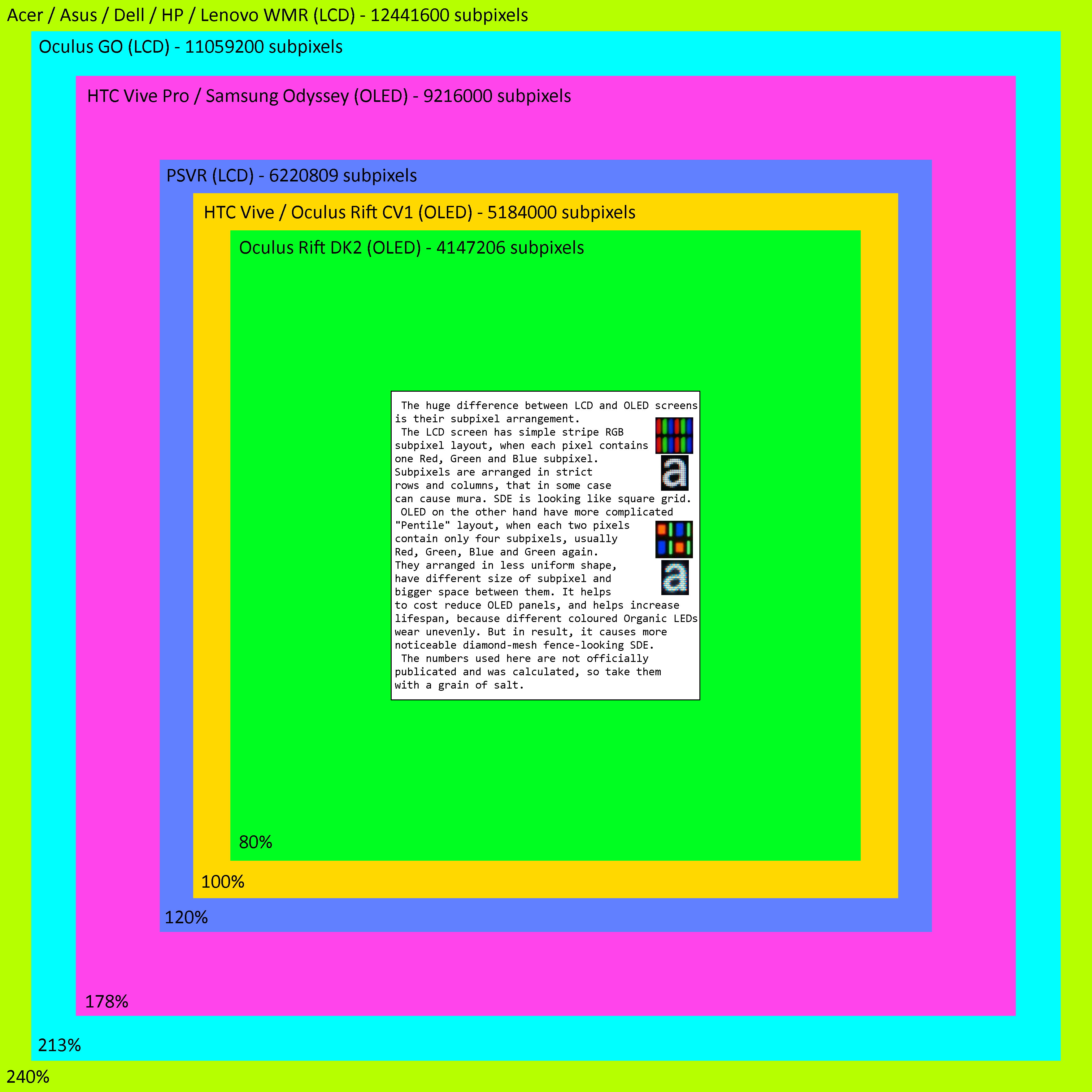 Разрешение В остальном его экран - разрешение как у Vive Pro. Хорошо что 3 субпикселя, но ведь это LCD! Ближайший аналог - дешевые WMR. Не помню такого энтузиазма по поводу их кранов. Некоторые даже переход с WMR на старый Окулус Рифт считали для себя апгрейдом.