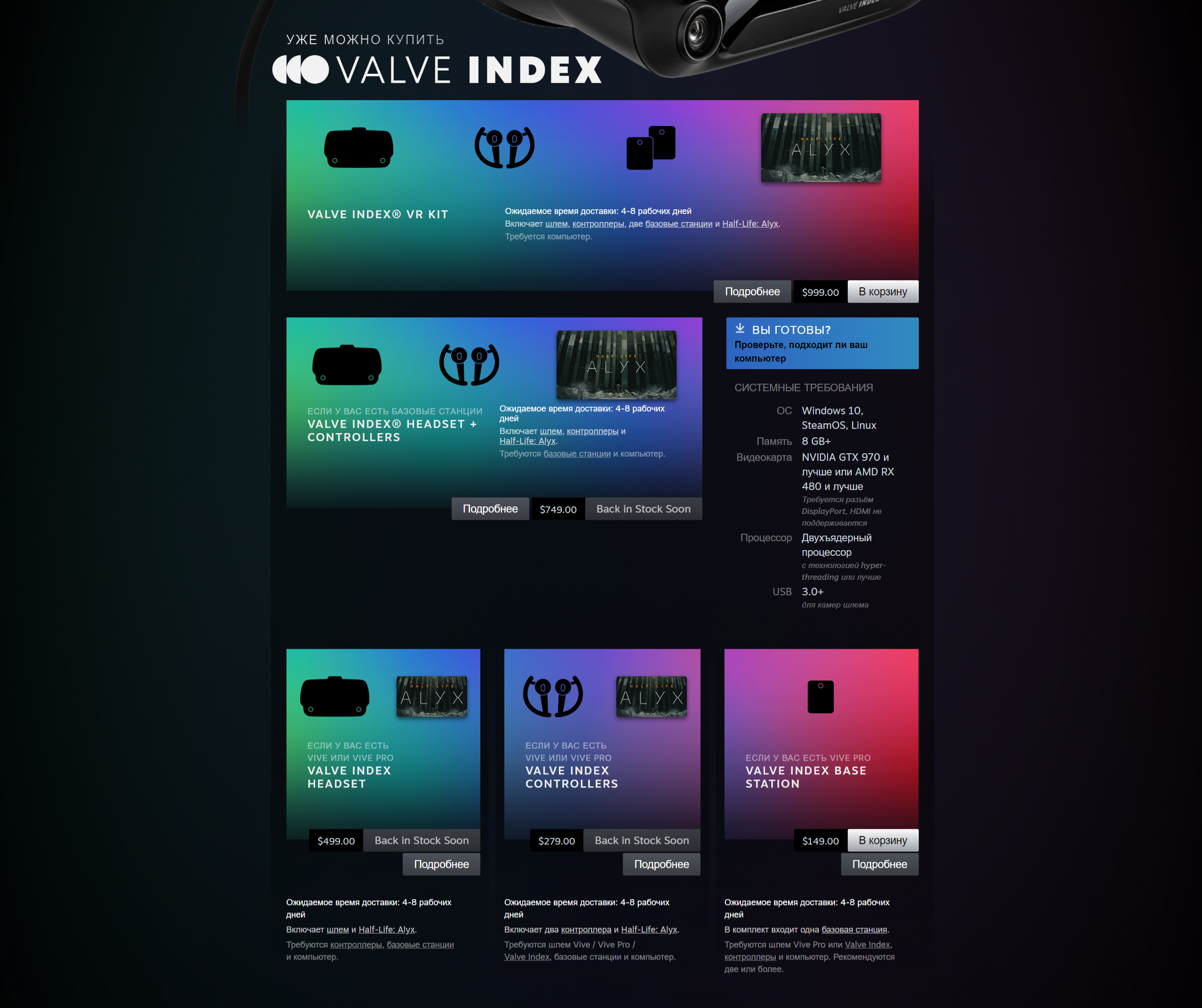 Цена Его цена приближается к VIve Pro, равно как и характеристики. Опять же, не помню у людей энтузиазма по Vive Pro. Все считали его слищком дорогим и недостаточно хорошим. Index чуть дешевле и чуть хуже (LCD). Откуда радость?