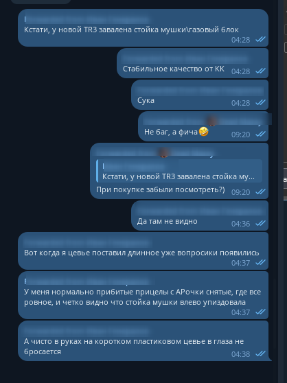 Ну и кстати, собакаровер с котом на связи. Не стрелял 2 недели, обстоятельства. Сейчас притру моноблок, поставлю мега прицел марки taigan. Делаем ставки, сколько проживёт. Если что, я с дтк и там отдачи не чувствую.