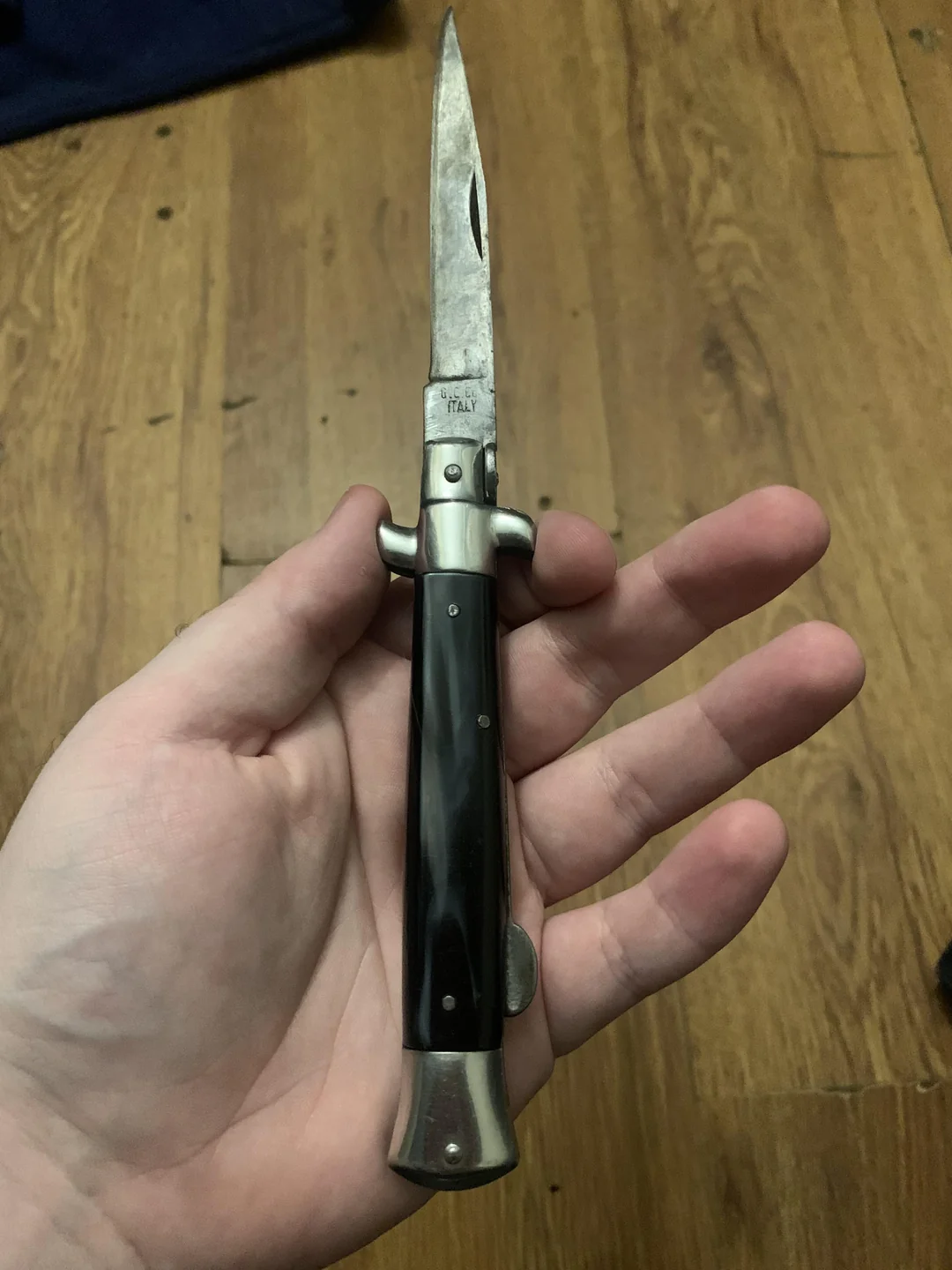 в один пост два видоса не влезают, вот на втором видосе я его открыл резким движением, это ненадёжно, если движение будет недостаточно резким то будет как дальше в видео - лезвие откроется частично и не будет зафиксировано будет подаваться назад, вдобавок ещё и кнопка может заесть, правда такое было только раз
