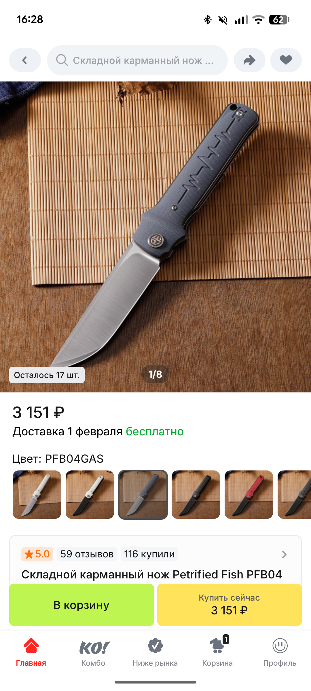 Заказал китайского ублюдка у нонейм продавца, который уже толи в бане алика, толи сам выпилился, за 1.2к лол. Думал наебалово, так как пуддинги делает буквально 2 компашки и стоит он 6+, да еще и в РФ не отправляют. Ждал что угодно в посылке, только не нож. А пришла годнота, звенит круче оригинала. Рукоять алюминий с наиприятнейшей анодировкой, 2 ряда керамика в осевом. А вот заточка я того китайца рот ебал, как будто точили во тьме об ступеньку подвала где делали этот нож. Но сведение мое почтение, меньше 0.2. У нас где-нибудь можно на заказ сделать клиночек за недорого? А то гуглю, везде только опт от 10+. Поставил бы алмазку и на едц:3 крайне приятный режек.