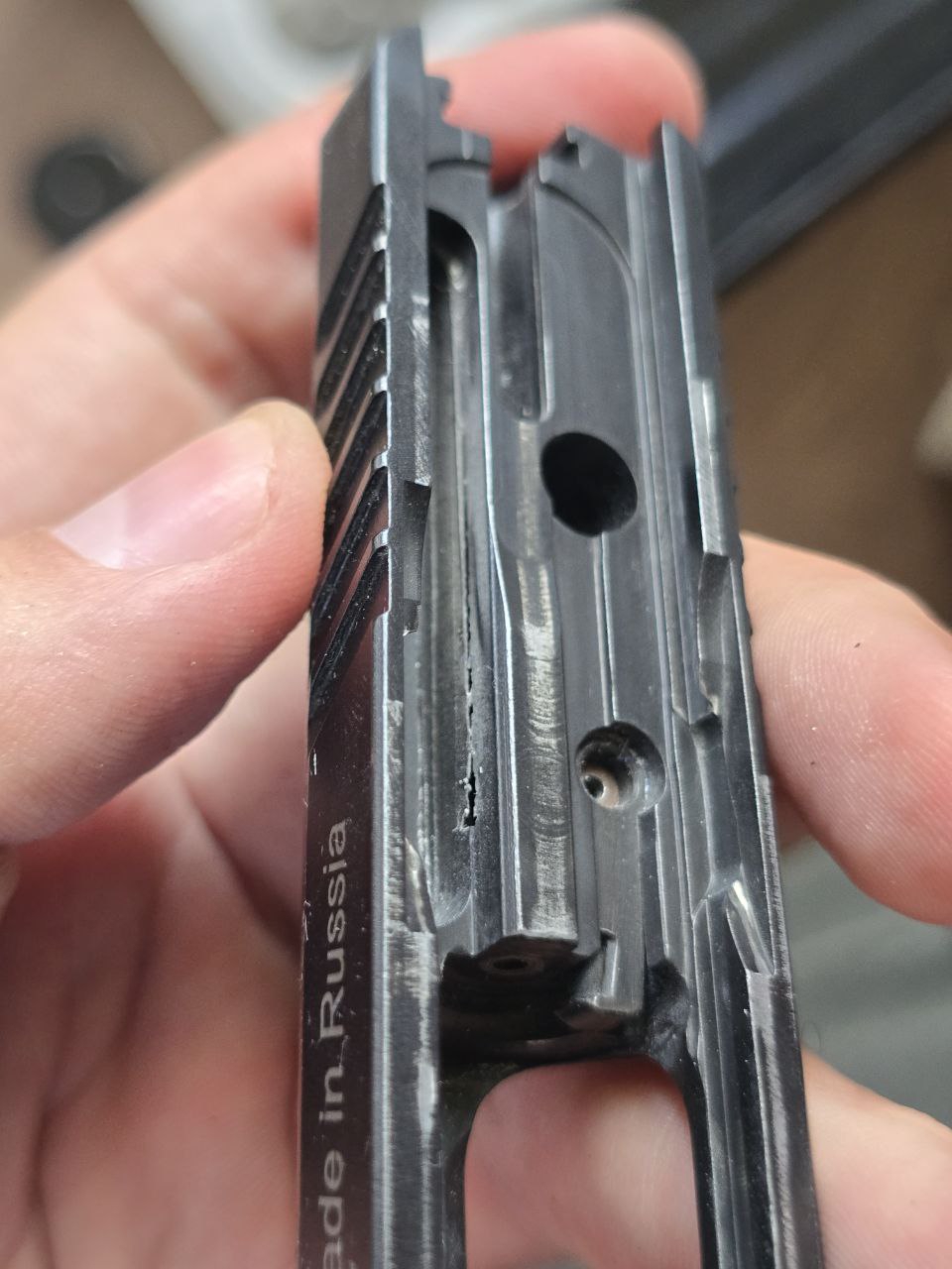 Владелец beydora bdr 90 на связи, читал прошлый гладкоствольный тред и там упоминался ржавеющий патронник beydora, проблема действительно есть, патронник начинает ржаветь если не мазать его периодически. Так как ружье стоит с прошлого года, решил провести его осмотр и смазку, открутил вот эту железочку и увидел что ебаные турки даже не сняли заусенецы после сверловки, нас за такое учитель труда в восьмом классе указкой пиздил, а тут целая оружейная компания позволяет себе такое. В остальном же претензий нет, хотя у меня настрел полпачки дробовыми и полпачки пулевыми. Ну и патронник который так и норовиться начать ржаветь не очень приятное явление.