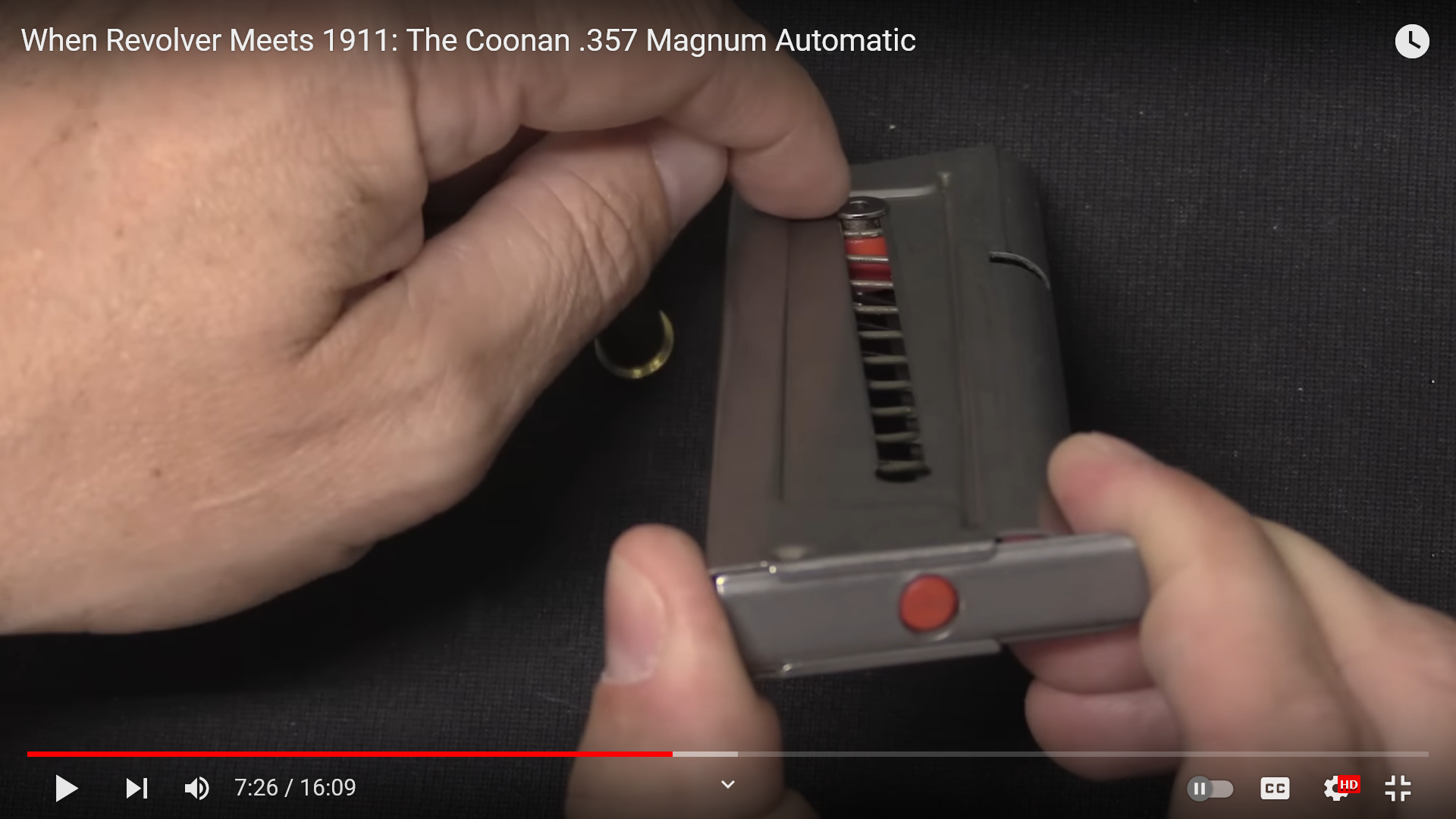 >>880628 >>880987 https://www.youtube.com/watch?v=AdJl6X9oFe8 Буквально .357 Магнум в пистолете. Магазин сконструирован таким образом, что продольные оси патронов в нём не параллельны друг другу, а под углом /\, если смотреть сверху. Плюс ось подавателя ходит не параллельно передней и задней граням магазина, а под углом (пикрелейтед), вследствие чего подаватель при движении вниз увеличивает свой угол наклона. Эти решения и позволяют патронам с закраиной нормально подаваться из магазина. Такие же решения применяются и в магазинах для патронов 22 калибра с закраинами (создатель пистолета буквально эти решения подсмотрел у таких магазинов).