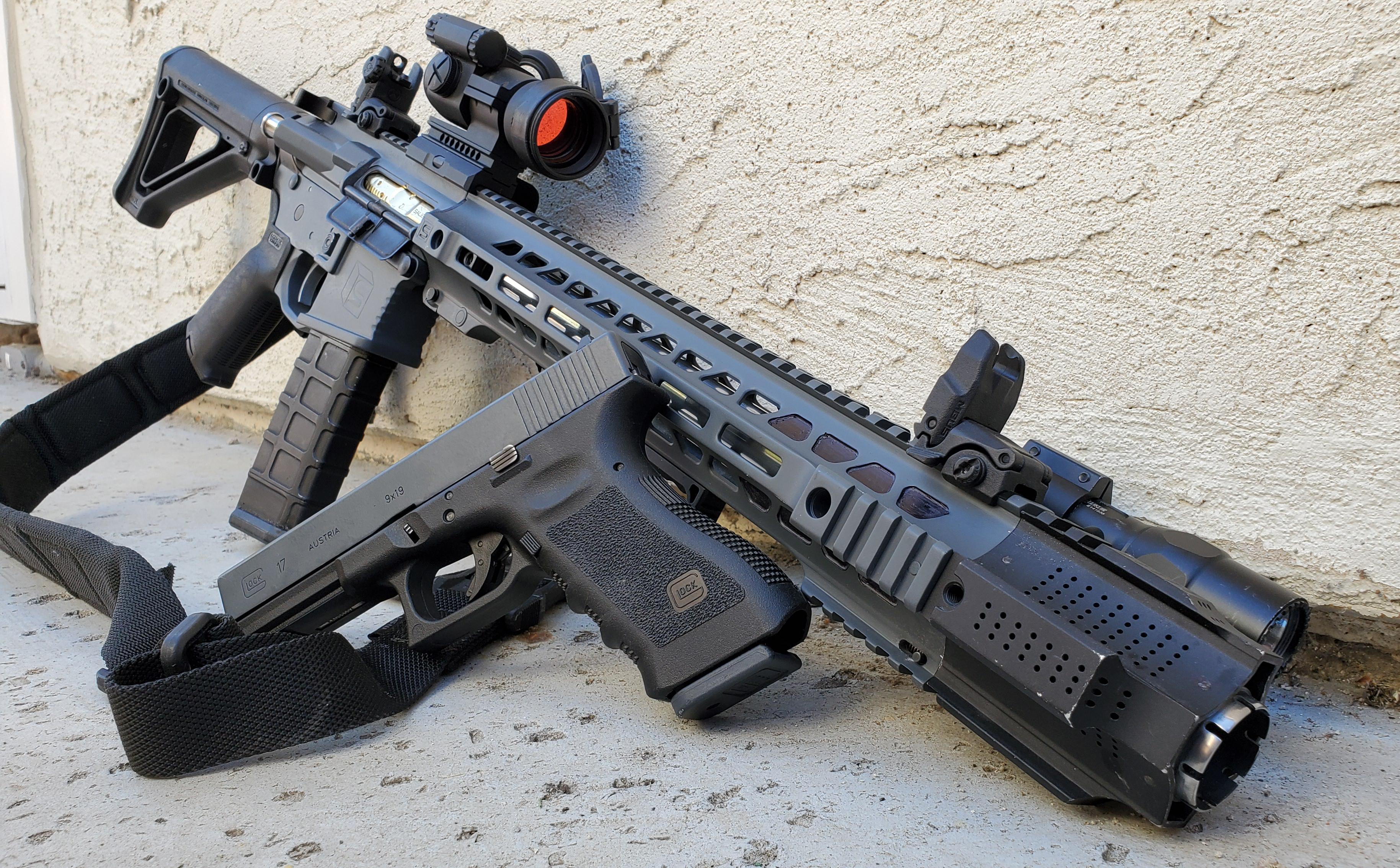 Идеал сточки зрения практичности, в плане бабахинга, самолололоны и просто чтобы было: 1 Глок-19 4 поколения 2 AR-15 в форм факторе боевой эмки, М4А1, например. FN-15 MC M4 М16 идеально подойдет ясен хуй, что арка, что может быть лучше арки для цивила?