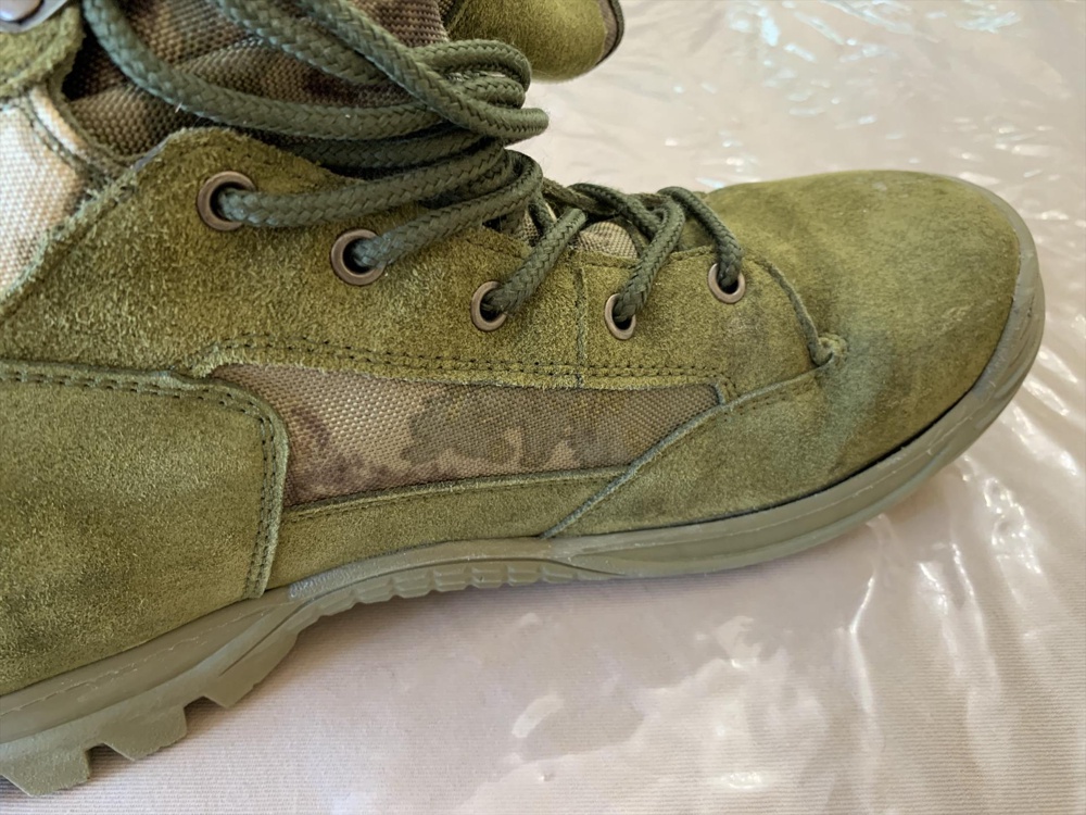 Примерил Фарадей 435, они же "сирийские берцы". Приятные, мягкие внутри, качественная фурнитура и шнурки - но просто пиздецово широкое голенище: заправил штаны, затянул полностью и всё равно болтаются на ноге, хотя колодка по размеру подходит.