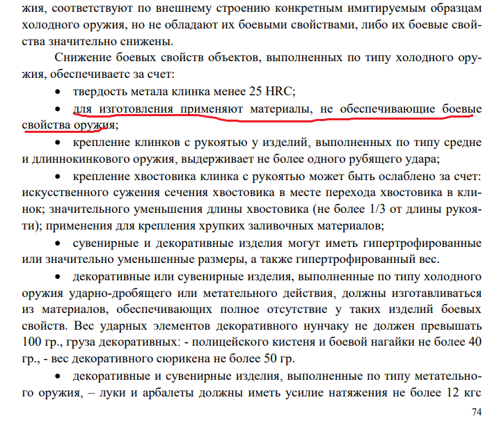 у клинкового как ты возможно знаешь разница есть, ножи и мечи из пластилиновой стали оружием не считаются, несмотря на то что их вполне хватит пропороть печень. с дробящим то же самое, дубинки из всякого мягкого говна это не оружие, в том числе цельнорезиновые. как бы местный трясун не трясся по этому поводу