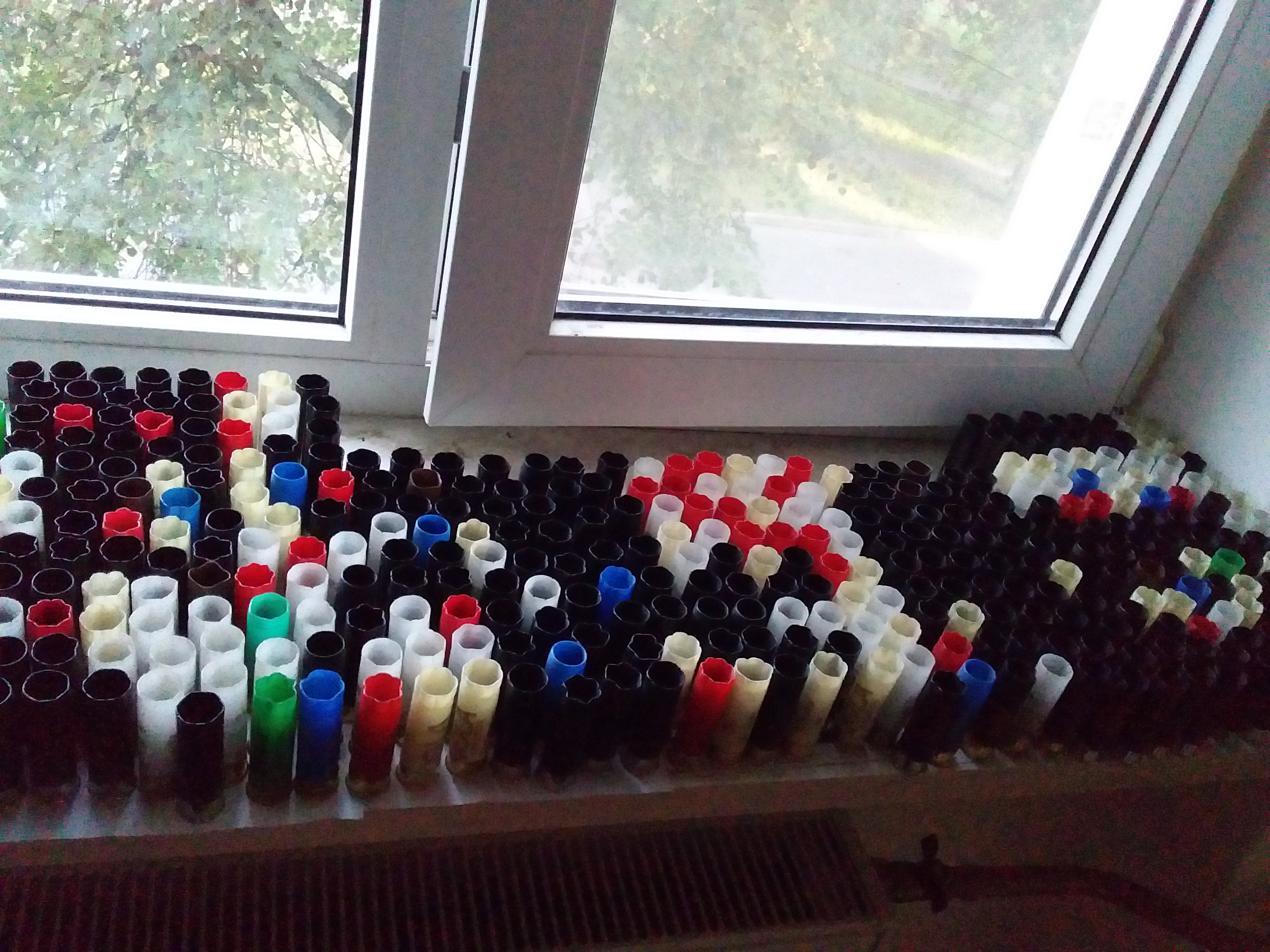 >>930371 Однострел со стенда тоже мою после декапсюляции. Собираю по производителю и цвету, при переснаряжении определённый цвет соответствует виду заряда - дробь, картечь, либо пуля. А тут от нечего делать и для релаксации решил старые заводские (по 19 рублёв купленные. Эх, какие были цены....) промаркировать, а хорошие наклейки и закончились.