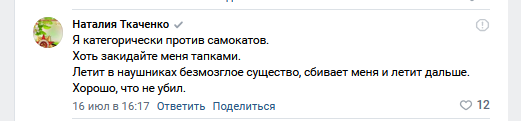 > Нет, это проблема пешеходов. И т.к. пешеходов абсолютное большинство и большая часть их них относится к самокатчикам крайне негативно - отсюда и идут разговоры о полном запрете этой хуйни.