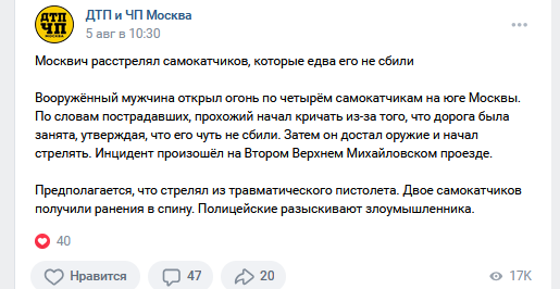 >>954119 >>954121 Причина тряски, соевые? Вон, базированные молодые люди вполне одобрили противоправные действия собрата по оружейной теме в отношении самокатчиков. Лично я то осуждаю нарушение закона, но вы сами видите как народ относится к самокатчикам и дыма без огня не бывает