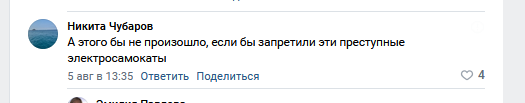 То что пыниксы катаются на самокатах вдвоем, и влетают на них в кого попало это их проблемы. Вслучае чего найдут и накажут. Все эти запреты касательно самокатов то же самое что и вопли домохозяек ААА ЗОПРЕТИТЕ ОРУЖИЕ ОНО УБИВАЕТ. И так ограничений по скорости добавили, пусть этого хватит. Но пердиксам ниприятна.