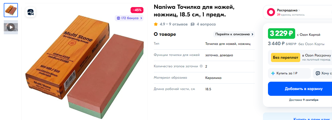 >>954896 Ок, тогда решено. Насчет Нанивы - я так понимаю это бюджетная линейка, но судя по отзывам вроде не говно: https://www.knivesandtools.com/en/pt/-naniwa-multi-stone-grain-220-1000.htm Хотя хотелось бы Японию, а он, как оказалось - Вьетнам. У Suehiro нашел 400/1200 на rezat.ru, я так понимаю это был бы идеал, но он стоит 4300 + доставка, итого 5к, слишком жоска.