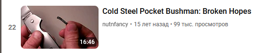 Vininull - самый лучший и уже самый мертвый канал, тесты на хард-юз этого жида самое ценное, что дал ютуб ножевому сообществу. https://www.youtube.com/user/vininull