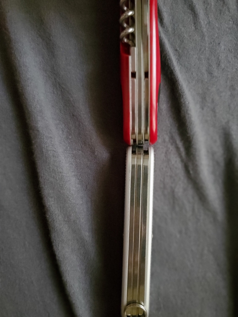 Пришел alox x. 1. Тоньше чем трехрадник с пластиковыми накладками. 2. Обух толще чем у 111-го. 3. И по ходу в швейцарской армии служат исключительно левши. Только блядь на алоксе ножницы открываются с левой стороны и имеют ногтевую насечку с лицевой, то есть заточены под открытие левой рукой.