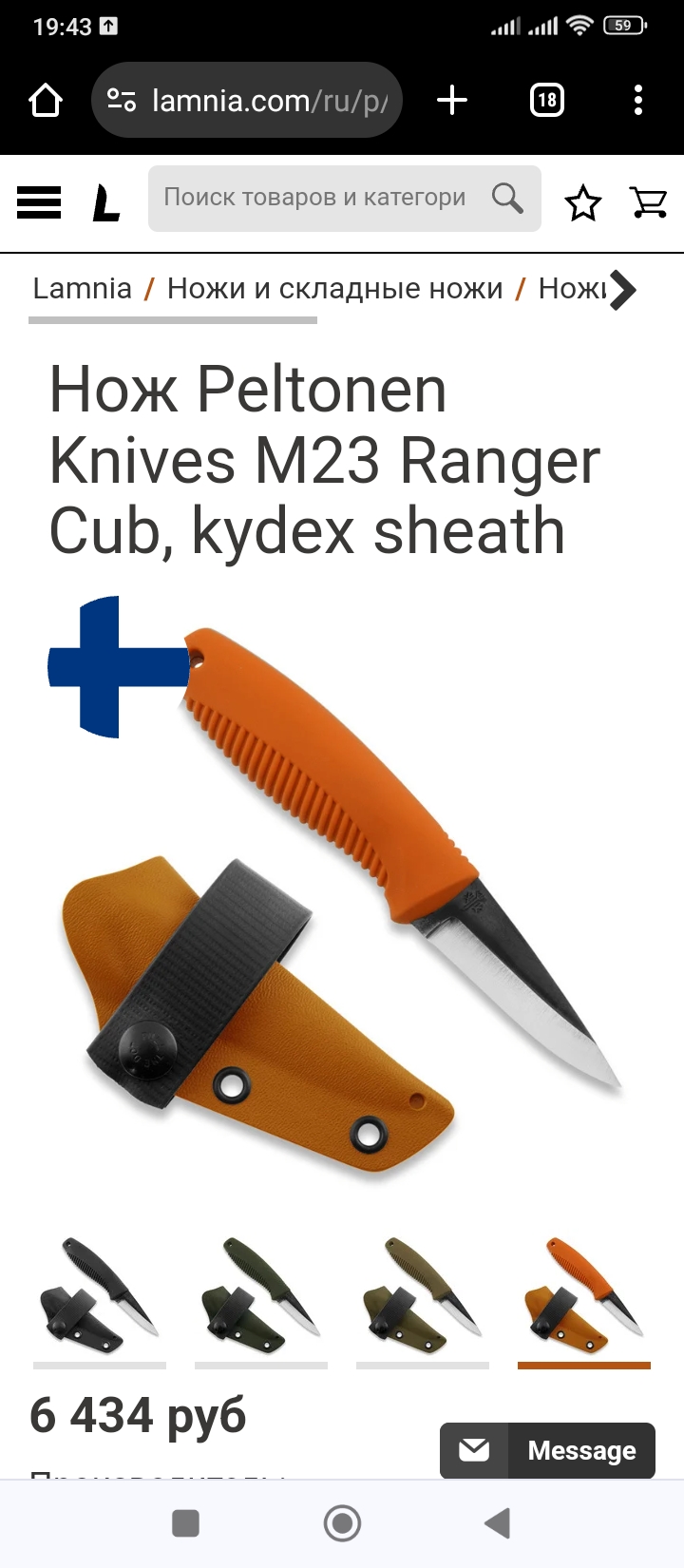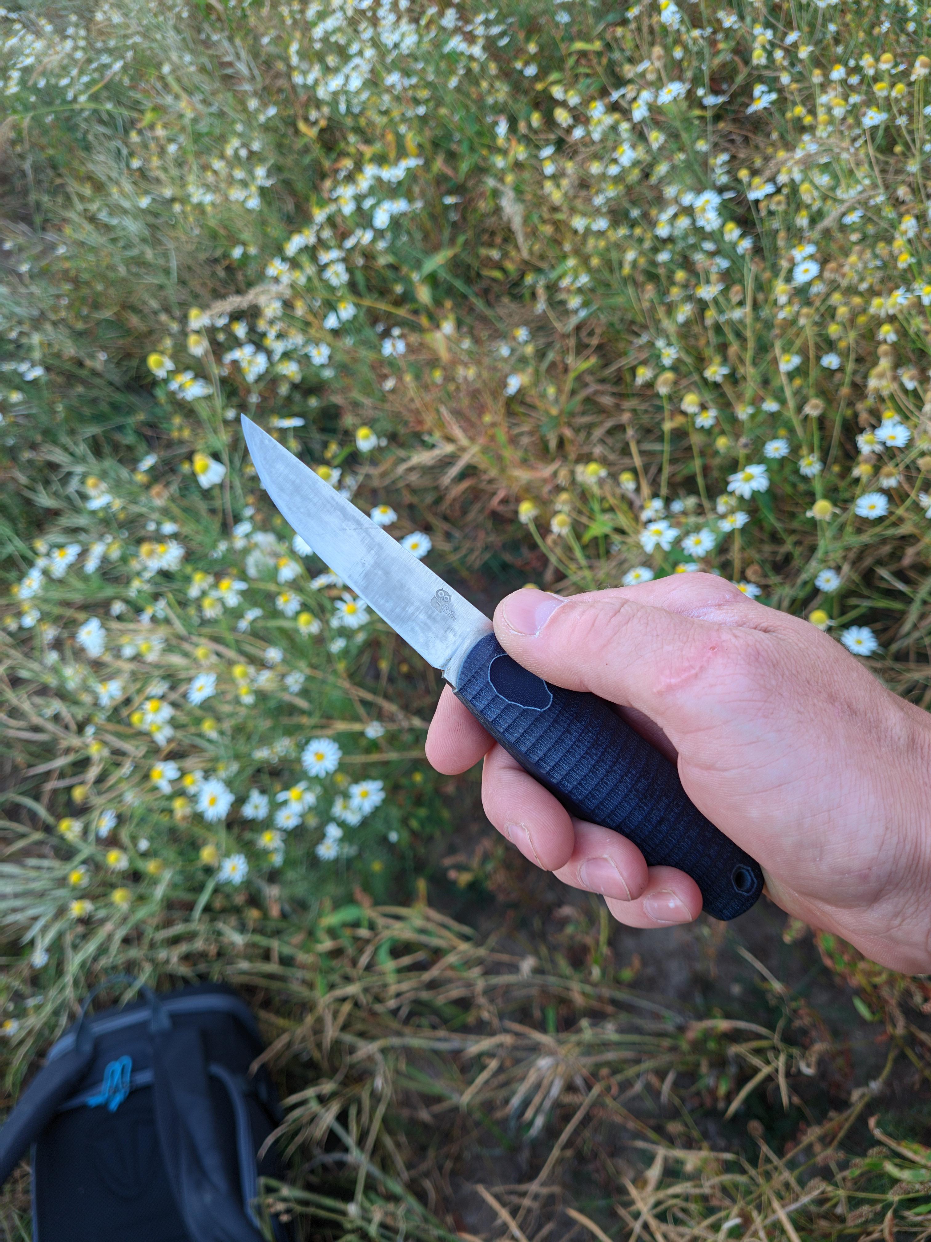Посмотрел таки видос Мойдодыра про мелкофинку. Это не оригинальный проект, а "кастомизация" имеющейся пелтовской модели. Оригинал во-первых выглядит лучше (рукояти и ножны разных цветов, а не только синий + нет штампа Мойдодыра на ножнах). Сталь там вполне нормальная, используется и на других финских финках, Мойдодыр говорит, очень хорошо дерево строгает, что в принципе ожидаемо, т.к углеродка, ещё и клин правильной формы со спусками в ноль. Кринжпорошок, который выкрошится от любого пука, на таком ноже близко не нужен (да и на любом другом тоже, но это уже другая история). Короче, из мелкофинок оригинал этой модели выглядит самым адекватным вариантом.